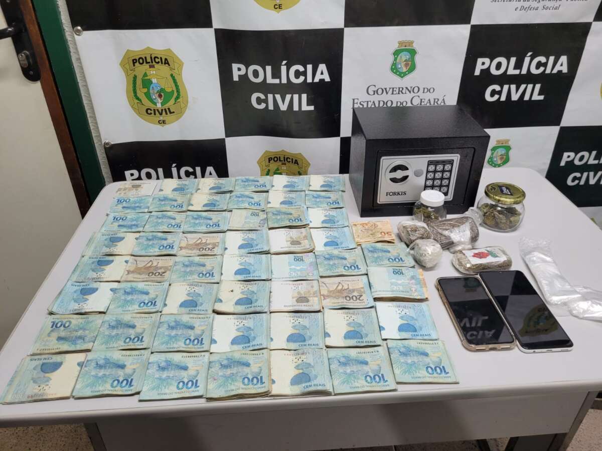 Uma operação desenvolvida pela Polícia Civil do Estado do Ceará (PCCE) resultou, na última sexta-feira (15), na prisão em flagrante de Lucas Levy Fontenele Rodrigues, de 30 anos. O alvo é apontado como responsável pela venda e distribuição de drogas sintéticas. A prisão dele, que estava com mandado de prisão em aberto, aconteceu no bairro Prefeito José Walter, na Área Integrada de Segurança 9 (AIS 9) de Fortaleza. R$ 50 mil em espécie, maconha e um tipo de droga sintética foram apreendidos durante a ação policial.