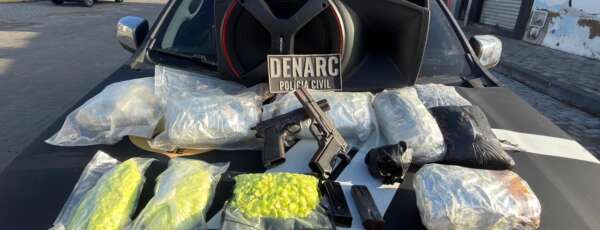 O material ilícito, juntamente com o suspeito, foi entregue na Delegacia Regional de Quixeramobim, onde um inquérito policial foi instaurado com base no crime de tráfico de drogas e porte ilegal de arma de fogo.