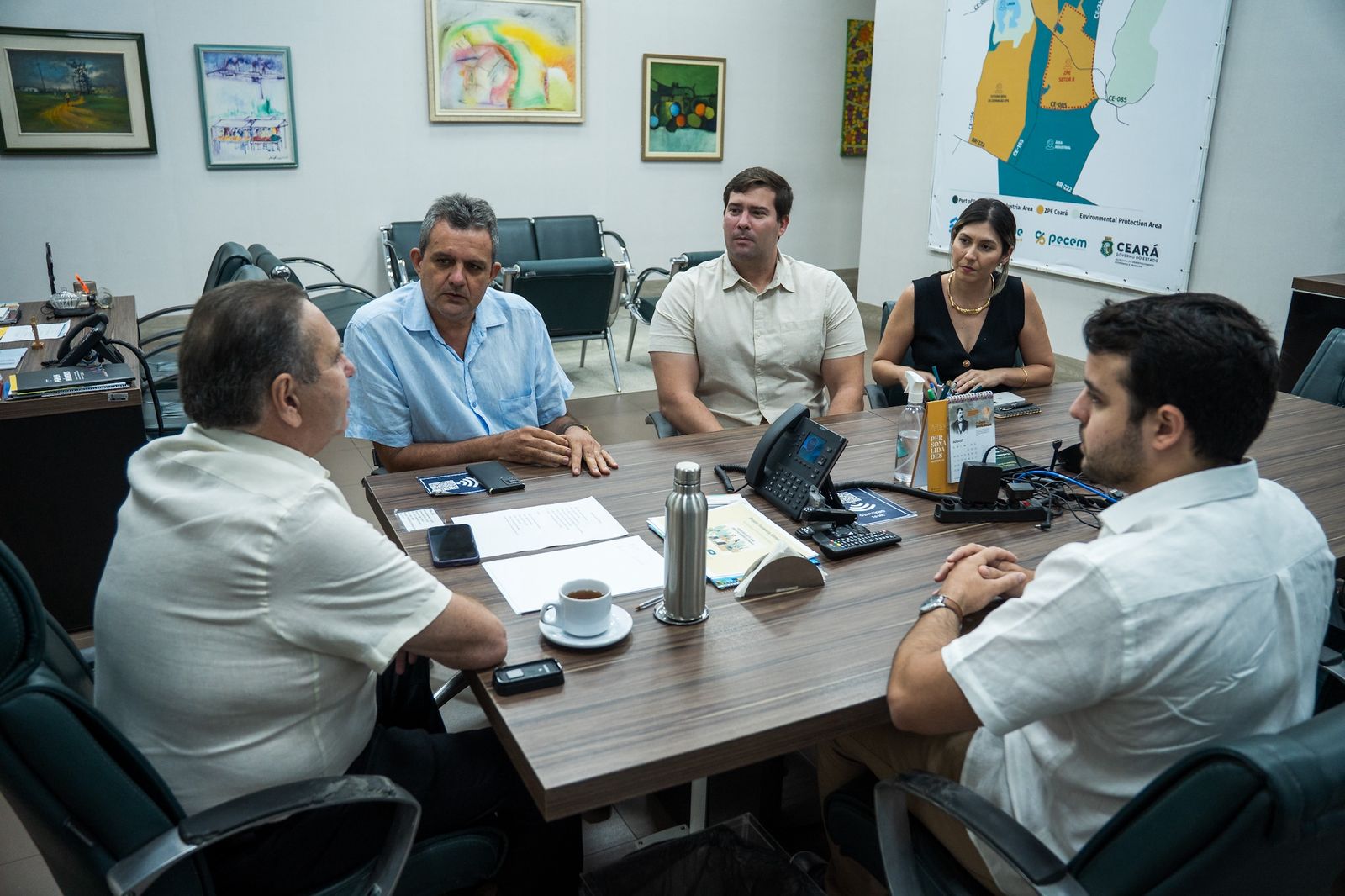 O secretário de Desenvolvimento Econômico (SDE), Domingos Filho, recebeu nesta quarta-feira (27), na sede da secretaria, a empresária Camille Mourão, proprietária da fábrica de casquinhas de sorvete Popcone. Na ocasião, ela buscou apoio para expandir sua fábrica, sediada no município de Icó. O vice prefeito da cidade, Pedro Dantas, também participou da reunião.