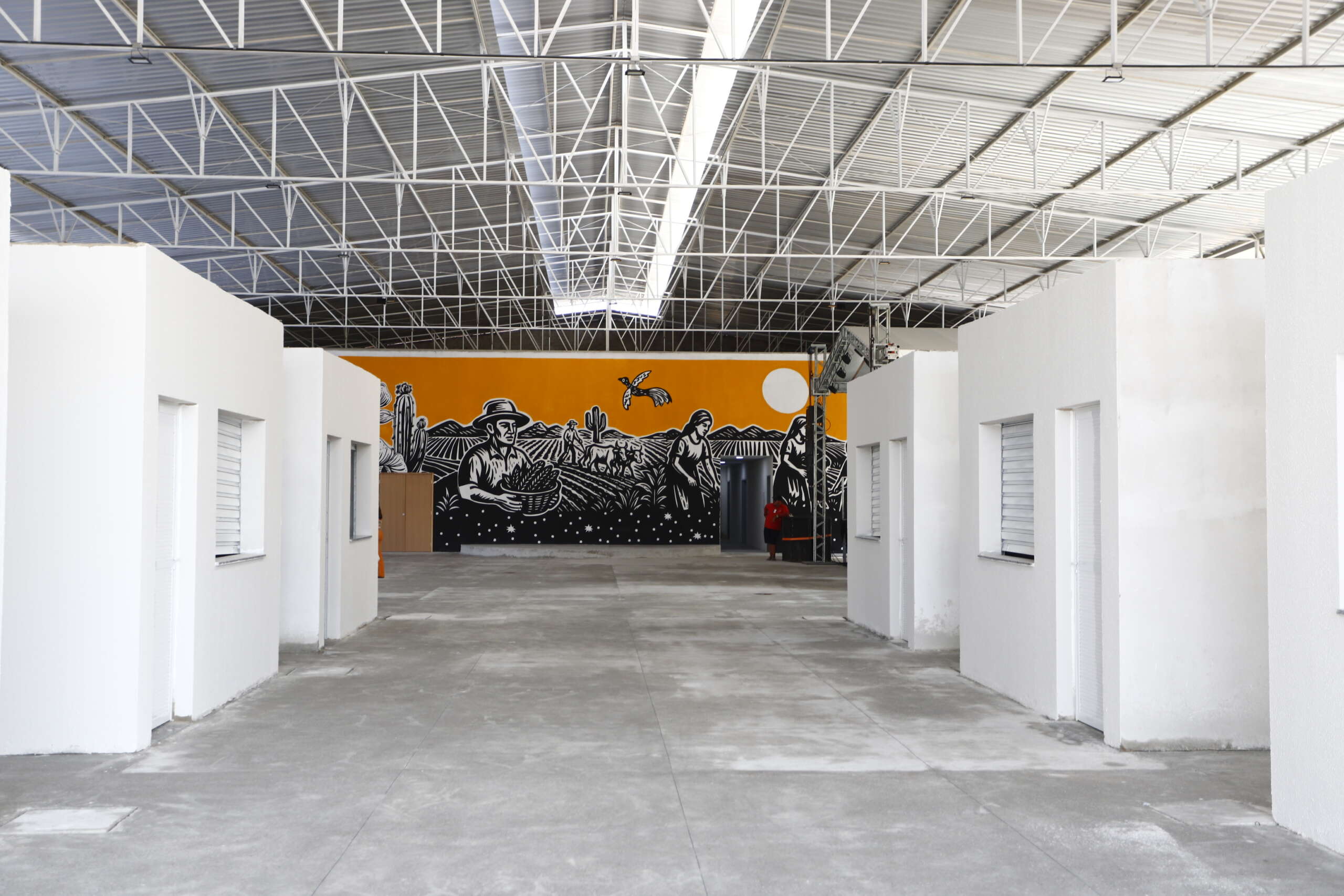 Com 1.500 m², o galpão conta com 12 quiosques de 10 m² cada, equipados com pia e instalação elétrica. A estrutura inclui ainda cozinha industrial, um centro administrativo e um auditório para eventos e capacitações, com banheiros e camarins.