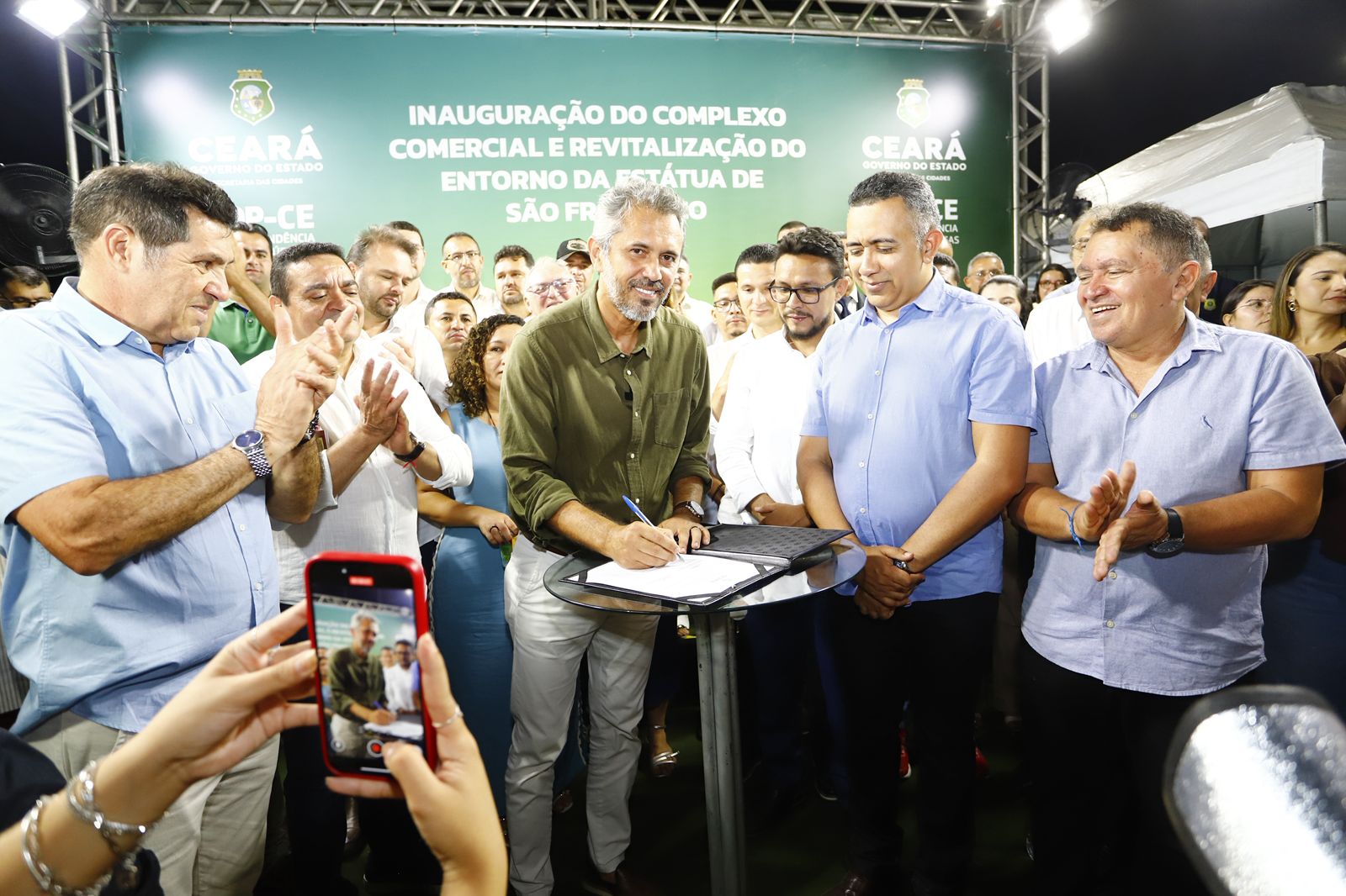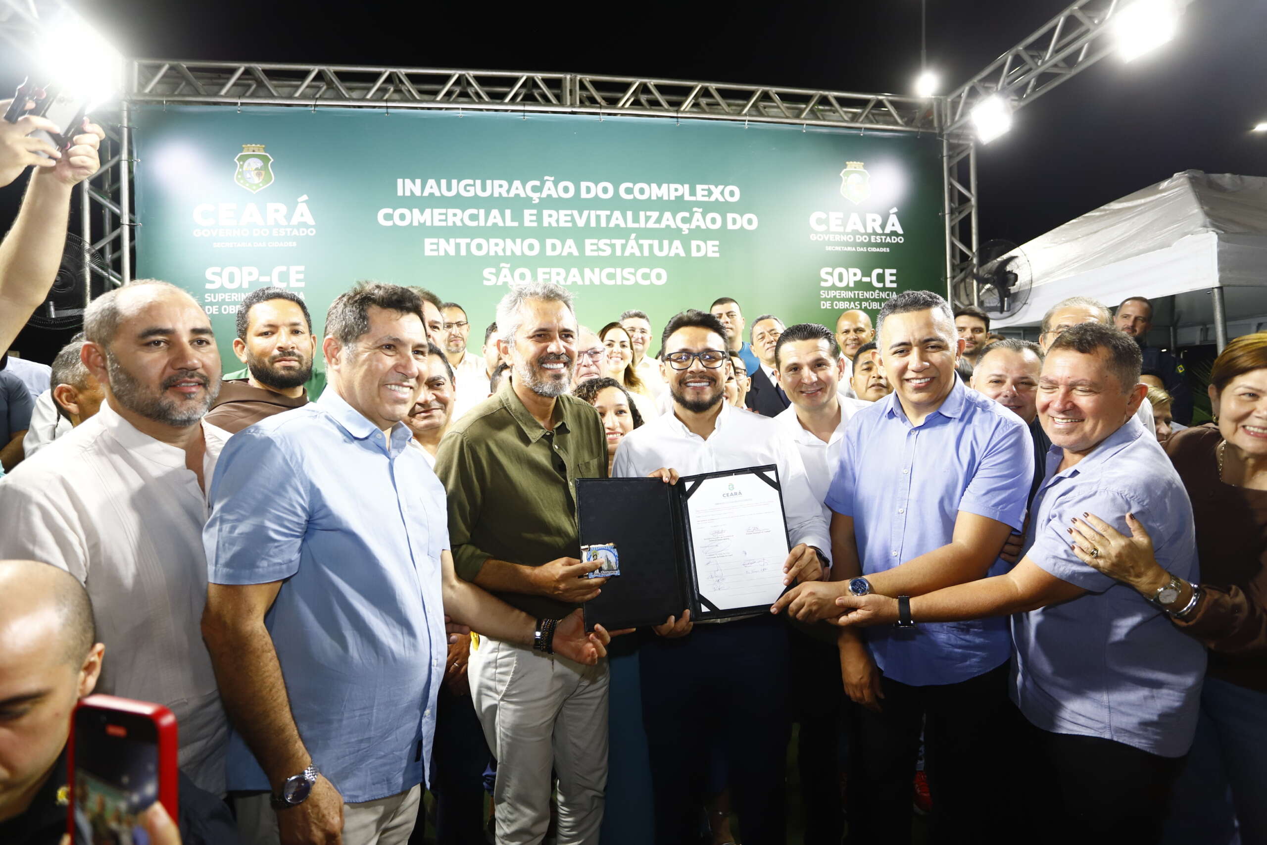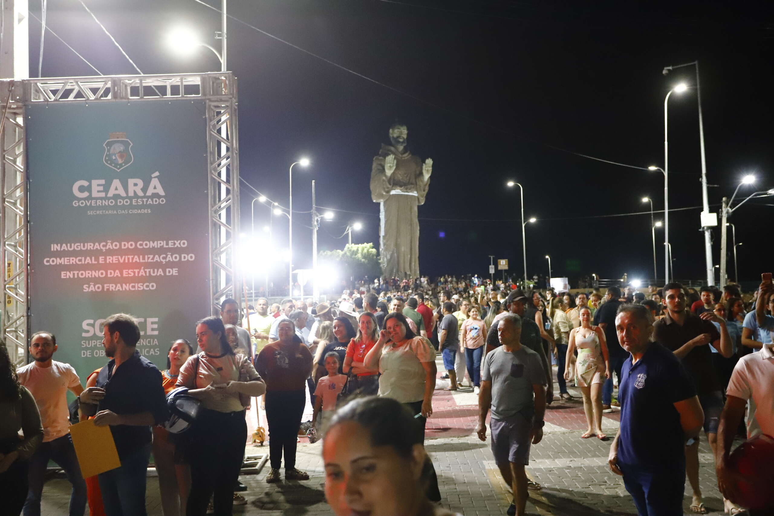 Mais tarde, durante cerimônia para inauguração do Complexo Comercial e Revitalização do entorno da Estátua de São Francisco, o governador Elmano de Freitas fez o anúncio de um aporte financeiro de R$ 10,2 milhões para a construção de sistemas de abastecimento de água e projetos produtivos para comunidades rurais de Canindé.