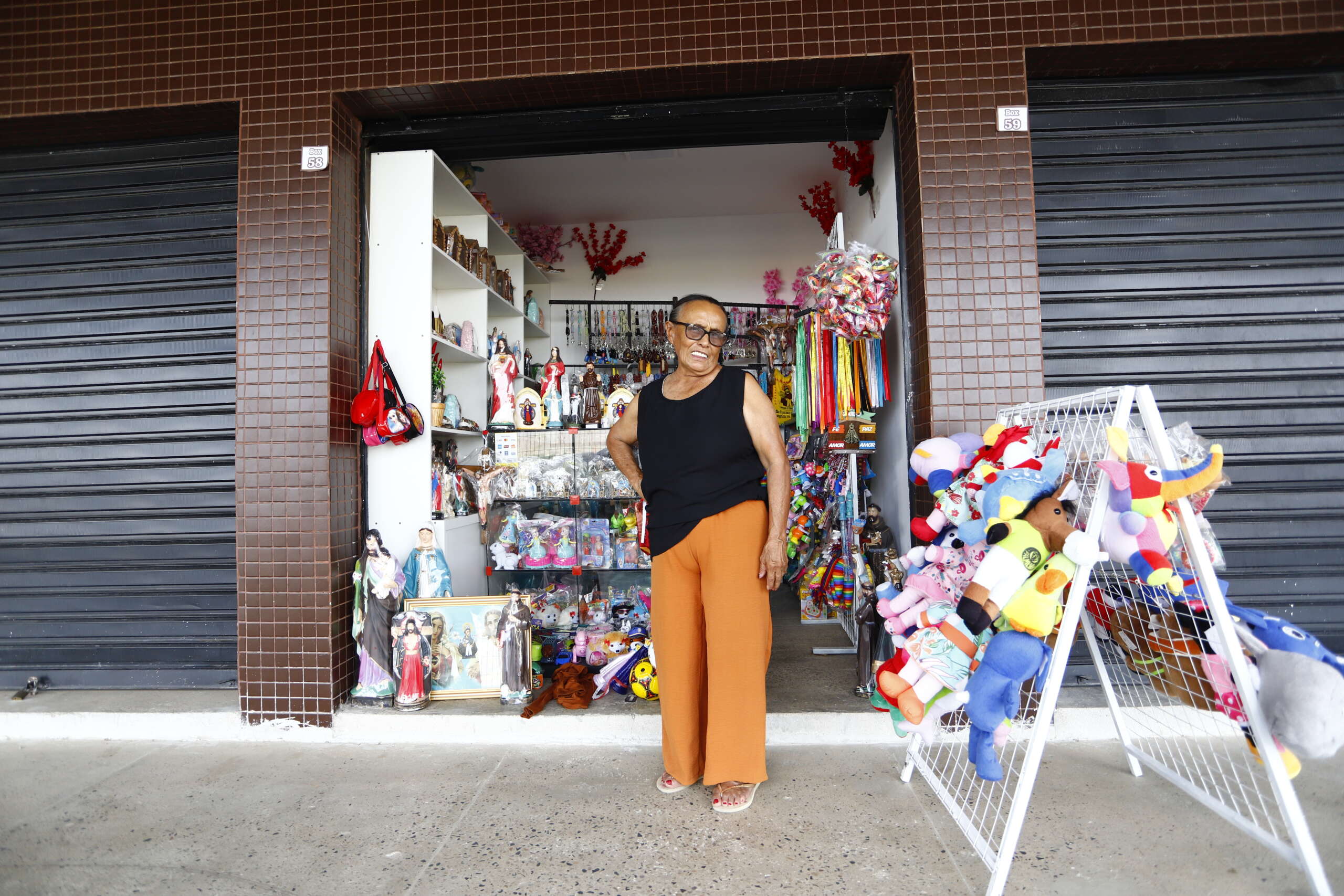 A mercadoria de Maria Neci Ferreira, que antes se desgastava com o sol, agora está abrigada no novo box do complexo. Há 13 anos, ela trabalha na estátua de São Francisco, vendendo desde água e picolé até, mais recentemente, artigos religiosos. Agora, a comerciante celebra o novo espaço. “É uma maravilha. Aqui as coisas não se estragam, aqui foi uma bênção. Ficamos à vontade, não levamos sol, nem chuva. Antes o vento vinha e quebrava, a gente tinha que comprar tudo de novo”, conta.