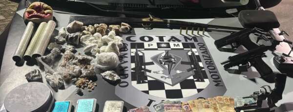 Em continuidade aos trabalhos, uma composição de raianos prendeu outros dois homens, no bairro Cristo Redentor (AIS 8). Com eles, os PMs apreenderam uma pistola, um carregador de pistola e cerca de 40 munições não deflagradas. Os suspeitos são homens de 24 anos, com antecedentes por dois crime de tráfico de drogas e porte ilegal de arma de fogo de uso permitido; e um homem de 25 anos. Eles foram autuados por organização criminosa e posse irregular de arma de fogo.