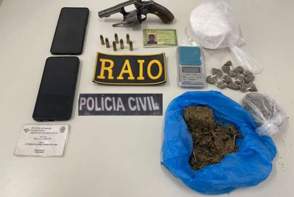 Os policiais tomaram conhecimento de possíveis atividades suspeitas em um imóvel do bairro Araça e cercaram o local. Ao perceberem a presença dos agentes, dois indivíduos tentaram fugir, mas foram capturados. Dentro da casa, a equipe policial localizou um revólver calibre .38, sete munições, 288 gramas de cocaína e 137 gramas de maconha.