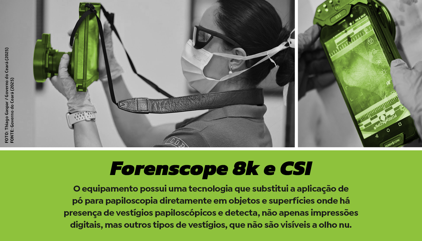 A Perícia Forense do Ceará possui duas unidades do Forenscope 8k, uma à disposição das equipes lotadas no Núcleo de Patrimônio e Vida (NUPAV) e a outra destinada aos Peritos Criminais e Auxiliares de Perícia lotados no Departamento de Homicídios e Proteção à Pessoa (DHPP). O Forenscope CSI Pro, por sua vez, está disponível em todos os núcleos da Pefoce no Interior.