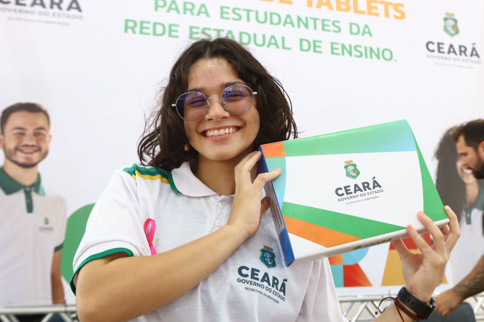 O estudante Nicolas Mesquita, da 1ª série do Ensino Médio, aguardava com grande expectativa a entrega do tablet pelo Governo do Ceará. Ele recebeu o equipamento nesta quinta-feira (2), junto com outros 725 estudantes de Itapajé. A cerimônia foi realizada na Escola Estadual de Educação Profissional (EEEP) Adriano Nobre, destaque por alcançar o melhor Índice de Desenvolvimento da Educação Básica (Ideb) do Ceará e por ser a primeira em aprovação no Exame Nacional do Ensino Médio (Enem).