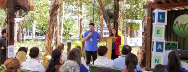 O evento de abertura contou com palestras e apresentações artísticas pela manhã e pela tarde. Na imagem, a médica Lina Araújo, mastologista do IPC, fala sobre prevenção
