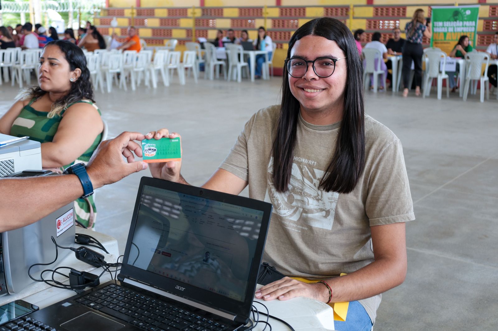 Rafael Freitas, morador de Cascavel, esteve presente na Caravana em busca de sua primeira oportunidade de emprego formal e emitiu o cartão do programa.