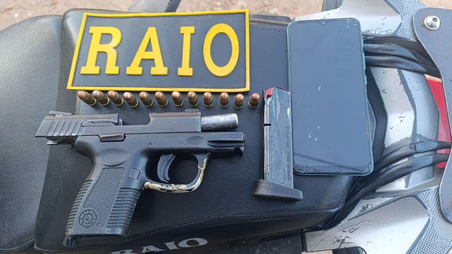 Equipes do Comando de Policiamento de Rondas de Ações Intensivas e Ostensivas (CPRaio), receberam informações sobre dois homens que estariam escondidos em um matagal com uma arma de fogo. Durante buscas, os policiais conseguiram localizar os suspeitos dentro de uma área de mata, e com eles foi apreendido uma pistola calibre 380 e 12 munições intactas.