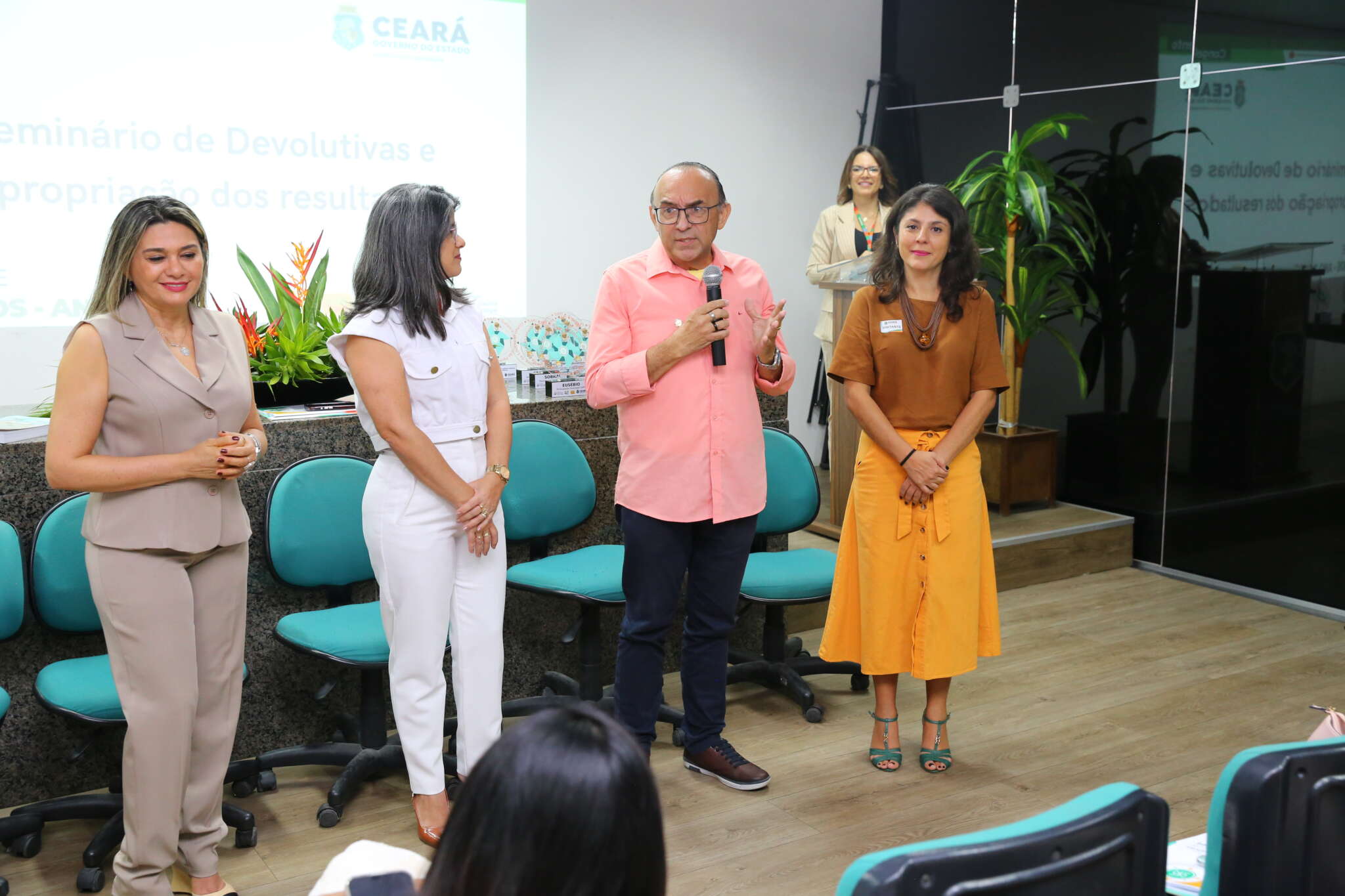 O seminário contou, ainda, com a presença da secretária executiva de Cooperação com os Municípios da Seduc, Emanuelle Grace; da coordenadora de Educação e Promoção Social da Seduc, Aparecida Prado; e da coordenadora de Cooperação com os Municípios para o Desenvolvimento da Aprendizagem na Idade Certa, Cristiane Nóbrega. Também participaram o presidente estadual da União Nacional dos Dirigentes Municipais de Educação – secção Ceará (Undime-CE) e secretário municipal de Educação de Jucás, José Marques Aurélio; a diretora de Políticas Públicas da Fundação Maria Cecilia Souto Vidigal, Marina Chicaro, representando a Coalizão Ceará; e os representantes do Laboratório de Estudos e Pesquisas em Economia Social (Lepes), Ligado à Universidade de São Paulo (USP) e à Universidade Federal do Ceará (UFC), Rafael Ferreira de Sousa e José Carlos Souza Lima.