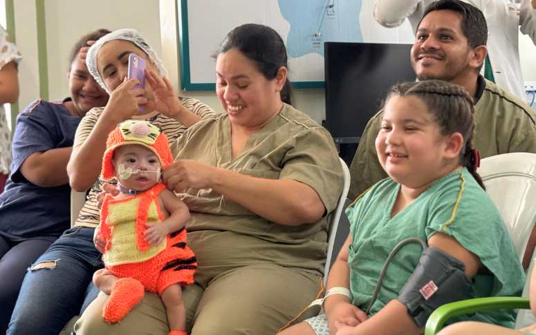 “As crianças adoraram a presença divertida do palhaço, que trouxe muitos sorrisos. Conseguimos esquecer por um momento a rotina do hospital e viver algo mágico. Foi um momento muito especial, meu filho não parava de sorrir”, contou Rosália Sales, 38 anos, mãe do pequeno Lucca Raphael, de 9 meses, internado para tratar complicações decorrentes de uma malformação congênita rara.