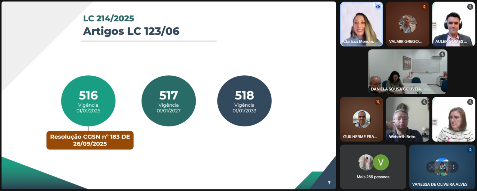 A palestrante Clarissa Mendes tratou da Lei Complementar n.° 214/2025, que inclui normas gerais dos novos tributos IBS e CBS (Contribuição sobre Bens e Serviços). Ela também abordou o Projeto de Lei Complementar n.°108/2024, responsável por definir as regras do Comitê Gestor do IBS. Sobre a coordenação de grupos de regulamentação e operacionalização do Simples Nacional, Clarissa afirmou que “tem sido um trabalho árduo, mas gratificante”.