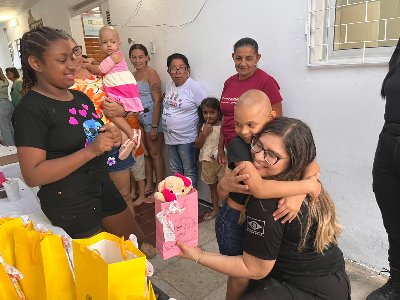 A entrega dos presentes proporcionou momentos inesquecíveis de alegria às crianças, tornando a ocasião mais humanizada e divertida. Participaram da ação as policiais penais responsáveis pelo projeto, a direção da Acold e voluntários do Instituto Vou, que se fantasiaram para interagir com os pequenos, criando um ambiente lúdico e contagiante.