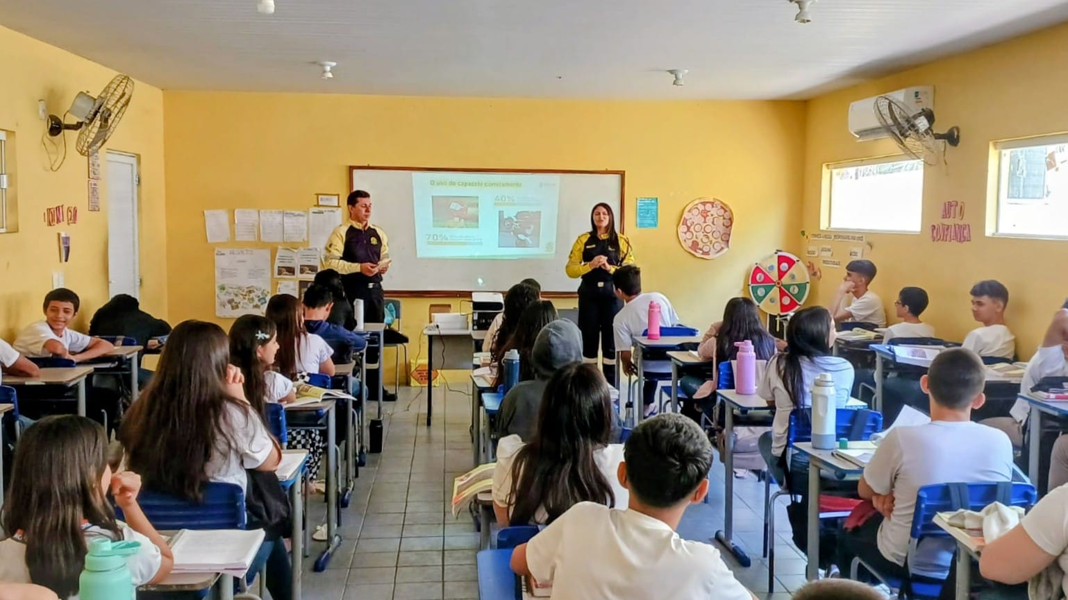 Com a temática “Jovens Cidadãos e Condutores do Futuro”, agentes de trânsito realizaram palestras e oficinas com o objetivo de conscientizar os alunos sobre a importância da segurança viária e noções básicas do Código de Trânsito Brasileiro (CTB).