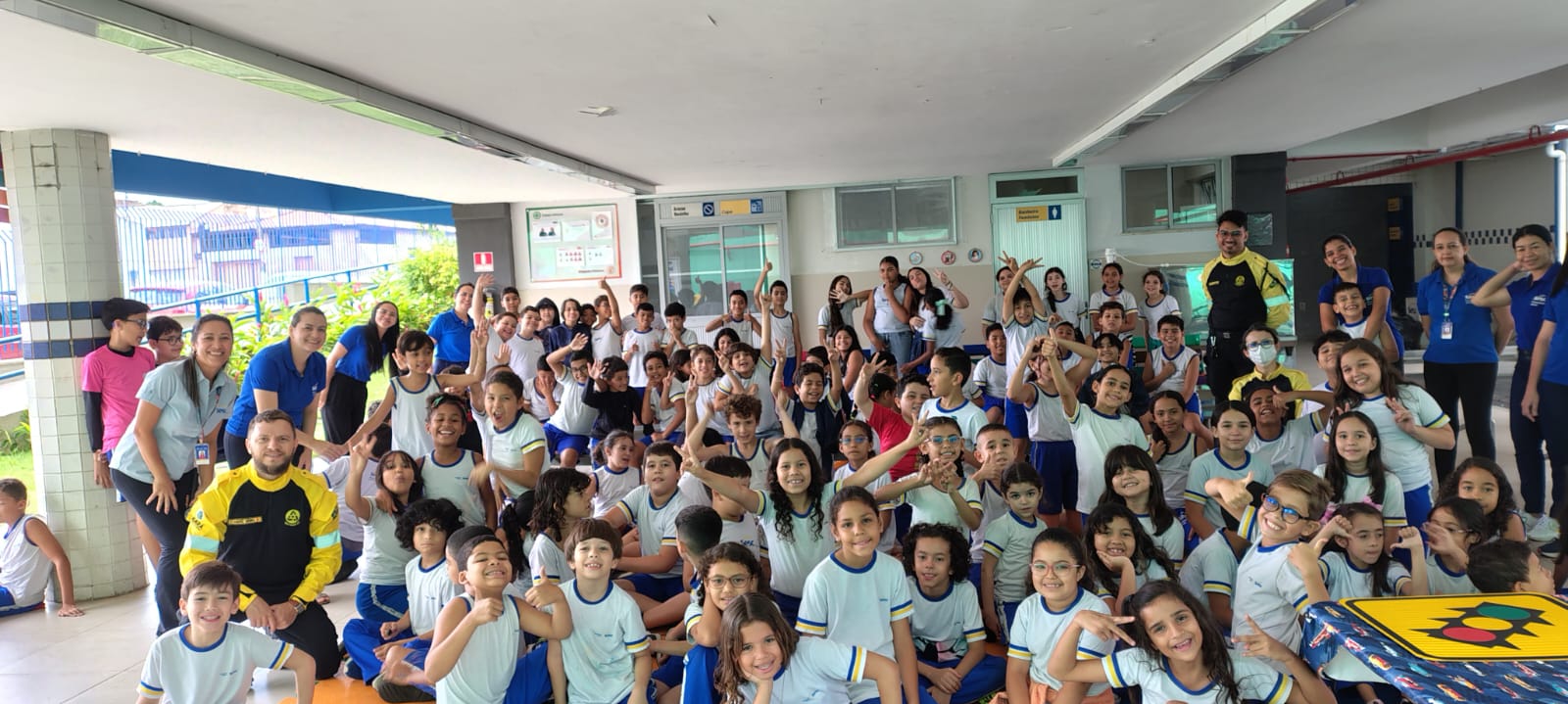 Agentes do órgão proporcionaram aos alunos, do 3º ao 5º ano do Ensino Infantil e Fundamental, um momento de palestra e interação sobre segurança viária. Além disso, foram desenvolvidas atividades lúdicas, como o “jogo das cores do trânsito”, baseado no Código de Trânsito Brasileiro (CTB).