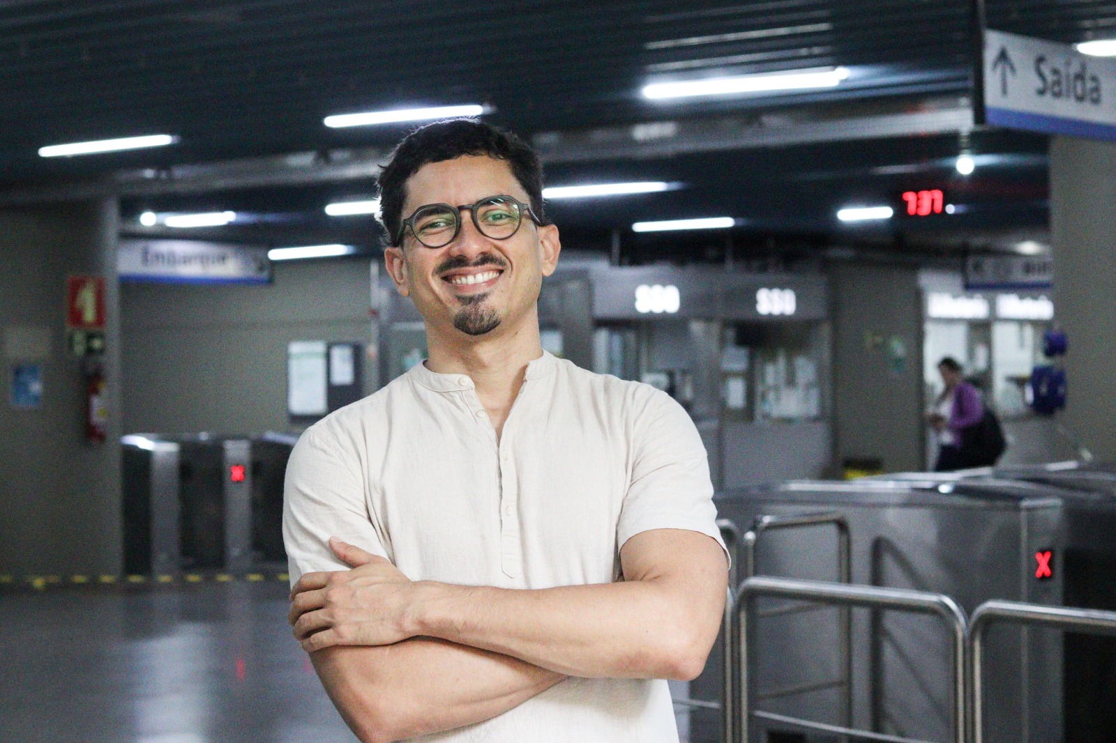 Os percursos diários entre Maracanaú e Fortaleza, realizados desde a infância na Linha Sul do metrô, tornaram-se o ponto de partida para a investigação artística e histórica do pesquisador e artista visual Léo Silva. Crescido próximo ao trecho ferroviário, Léo transformou as paisagens em movimento em matéria-prima para criar reflexões sobre corpo, território e memória. “Cresci fazendo esse trajeto. Primeiro com o trem, depois com o metrô. Com o tempo, comecei a registrar esses movimentos e percebi que ali estava também a minha história e a de muitas outras pessoas”, conta Léo Silva.