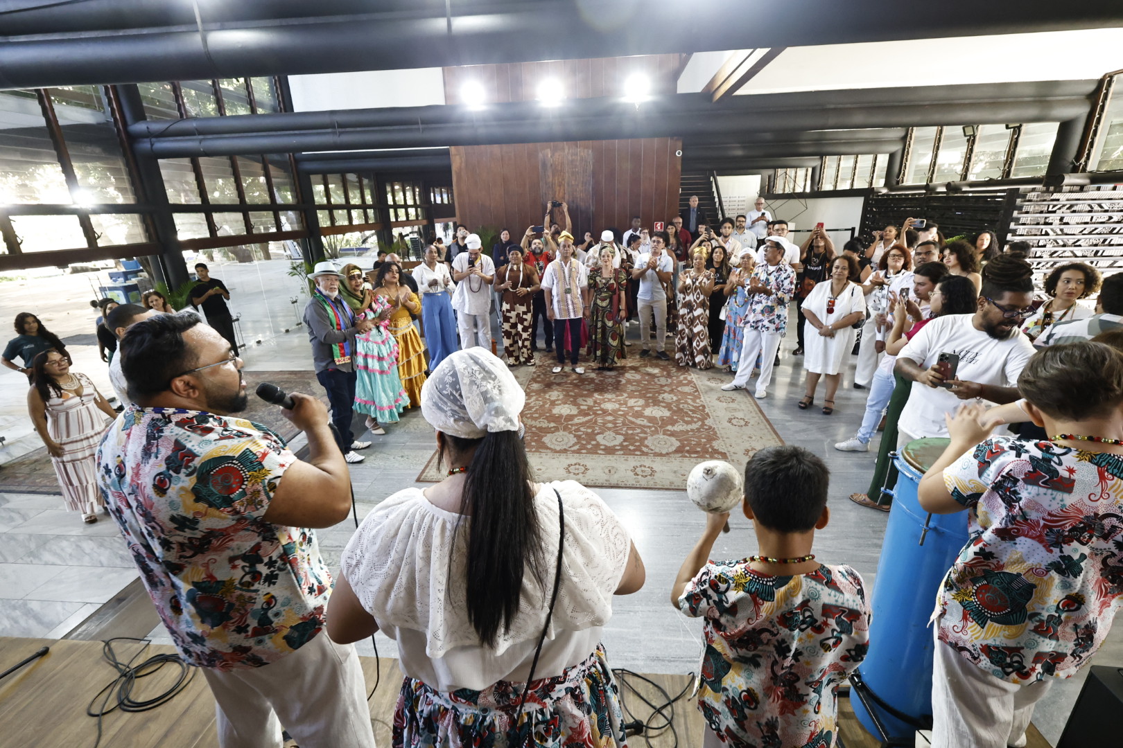 As autoridades e o público presente foram recepcionados ao som dos atabaques do Grupo Cultural Toque de Senzala. Na ocasião, o governador Elmano de Freitas esteve acompanhado das titulares da Seir e da Secult, Zelma Madeira e Luísa Cela, respectivamente, além de outras autoridades e gestores municipais.