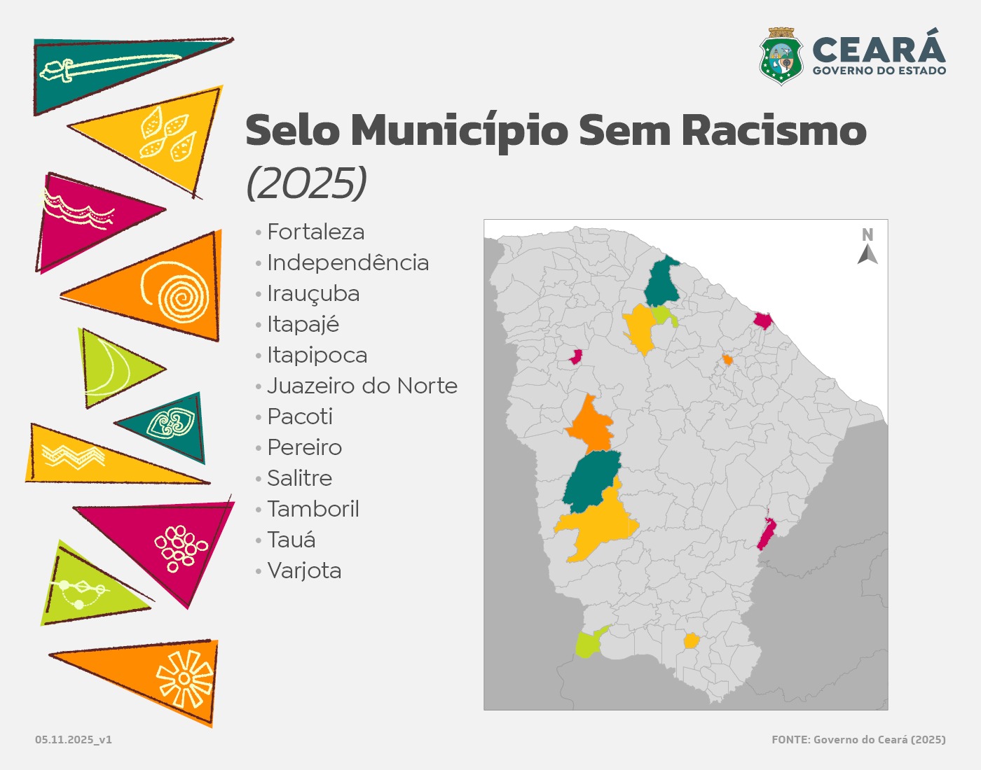 A Secretaria da Igualdade Racial (Seir) atua na implementação de políticas voltadas ao combate ao racismo e à promoção da igualdade racial, sendo responsável pela concessão do selo “Município Sem Racismo”. A iniciativa, criada por meio da lei estadual nº 17.704/2021, reconhece e incentiva as prefeituras que desenvolvem ações de enfrentamento às desigualdades raciais e valorização da diversidade étnica. Na mesma cerimônia, foram entregues 18 certificados, sendo 12 inéditos.