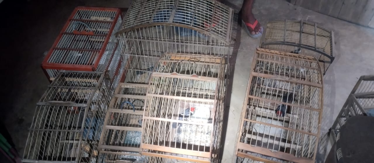 Uma equipe do Batalhão de Polícia do Meio Ambiente (BPMA) deslocou-se ao município de Canindé a fim de verificar uma denúncia de possível crime ambiental de pássaros em cativeiro. Com a autorização da proprietária do imóvel, os policiais entraram e constataram que o responsável pelas aves não tinha autorização do órgão ambiental competente para criá-las.