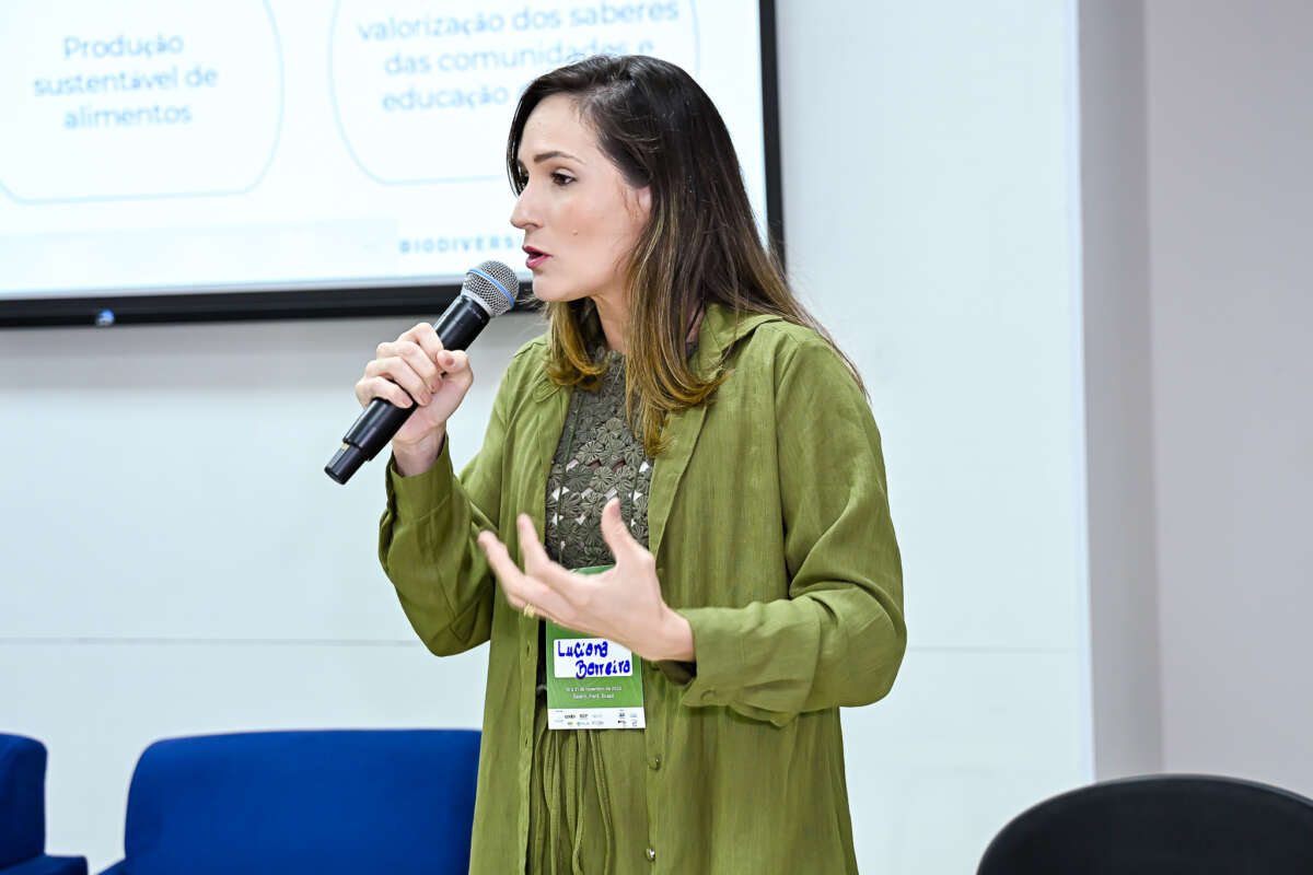 Durante o painel, Luciana apresentou as ações desenvolvidas pelo Grupo de Trabalho (GT) de Recaatingamento, criado pelo Governo do Ceará, por meio da Secretaria do Meio Ambiente e Mudança do Clima (Sema), com o propósito de propor medidas integradas de combate à desertificação, recuperação de áreas degradadas e valorização do bioma Caatinga.