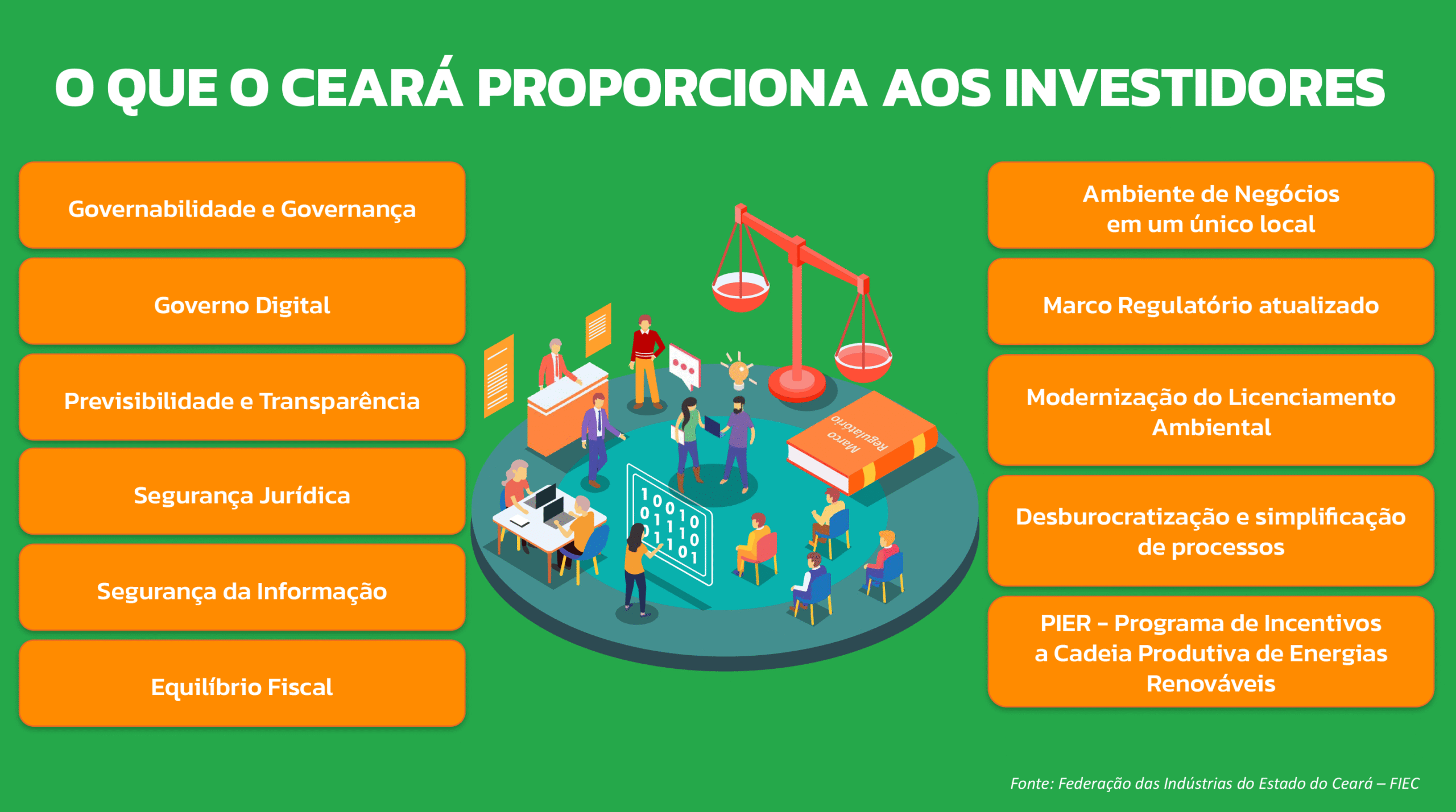 “Aqui mostramos o que realizamos em termos segurança jurídica, equilíbrio fiscal do estado e licenciamento ambiental mais célere, para garantir que esses investimentos aconteçam em diálogo com as comunidades, as empresas e as instituições, gerando possibilidades de crescimento para todos os cearenses”, concluiu Elmano de Freitas.