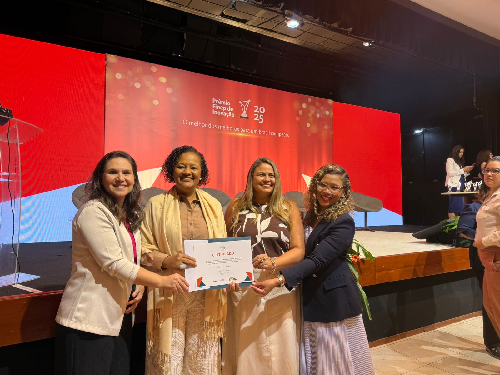 A Secitece participou do evento com uma comitiva formada pela secretária titular da pasta, Sandra Monteiro; pela coordenadora de Ciência e Tecnologia, Cíntia Eufrásio; e pela coordenadora de Inovação e Empreendedorismo, Sarah Monteiro. A diretora da Cadeia Criativa, Joyce Albuquerque, também esteve presente na premiação.