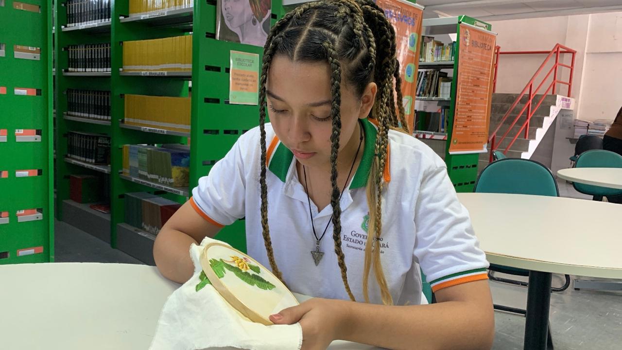 Na Escola Estadual de Educação Profissional (EEEP) Maria Ângela da Silveira Borges, em Fortaleza, 20 alunos participam atualmente do projeto de bordado. São dois encontros a cada semana, às terças e sextas-feiras, sempre no horário do almoço.