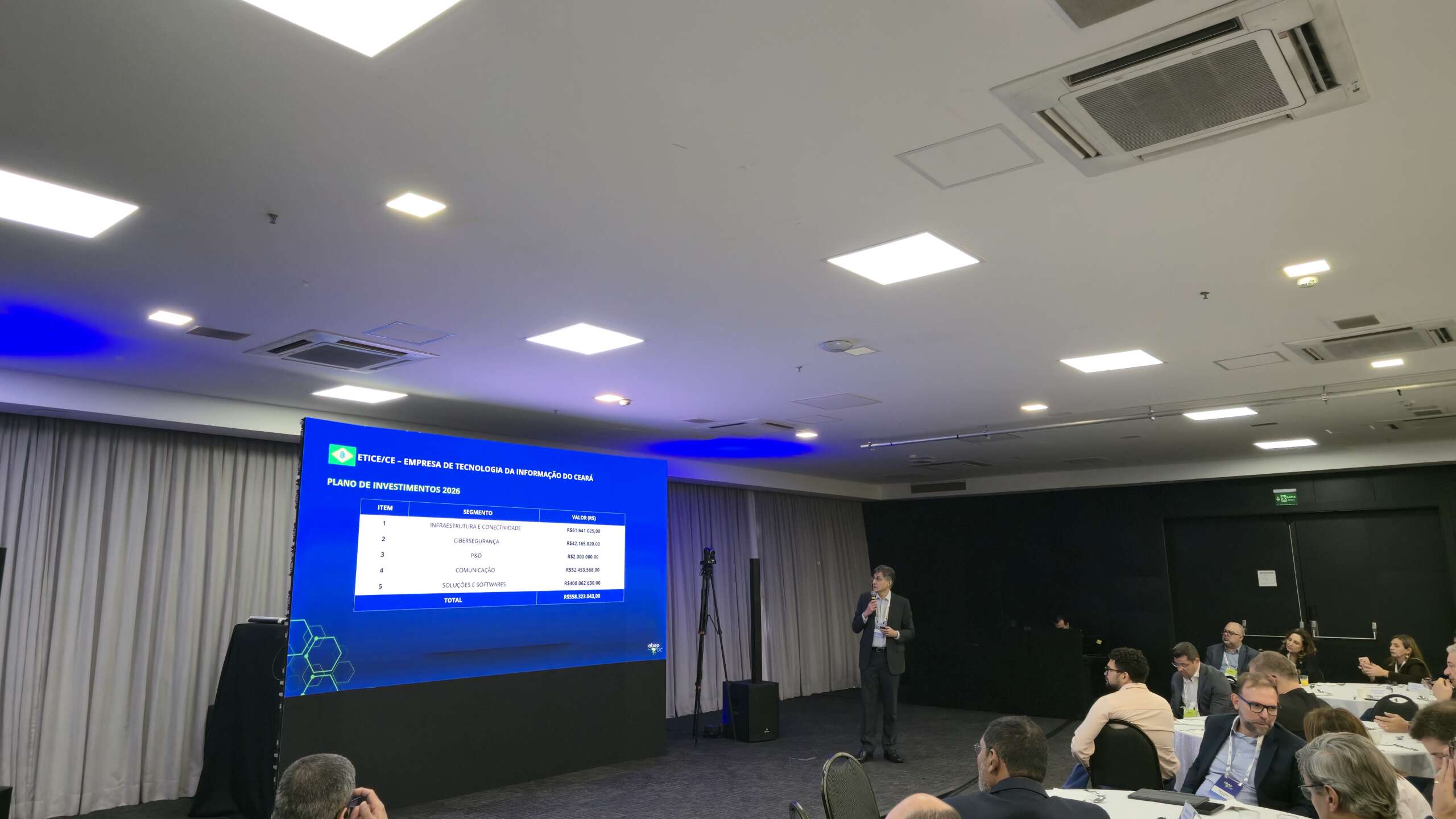 O fórum debate cibersegurança, inteligência artificial aplicada ao setor público, proteção de dados, cloud (nuvem) soberana e a nova edição do Índice de Oferta de Serviços Públicos Digitais (IOSPD). No Café da Manhã com o setor privado, que abre a programação, o presidente da Empresa de Tecnologia da Informação do Ceará (Etice), Hugo Figueirêdo. apresentou o plano de investimentos e os projetos da companhia para 2026, que preveem ampliação do Cinturão Digital do Ceará (CDC), upgrade da infraestrutura do datacenter da Etice, soluções com inteligência artificial e outras iniciativas.