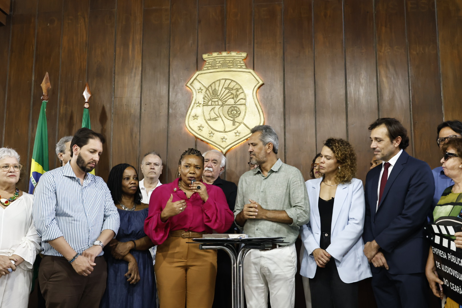 A Cultura cearense avança com a proposta do Governo do Estado de instituir o Plano de Cargos e Carreiras (PCCs) para a Secretaria de Cultura do Ceará (Secult) e criar a Empresa Cearense de Audiovisual. As mensagens foram assinadas pelo governador Elmano de Freitas nesta quinta-feira (4), acompanhado da ministra da Cultura do Brasil, Margareth Menezes, da secretária da Cultura do Ceará, Luisa Cela, e de outras autoridades e profissionais do audiovisual. As propostas seguem para apreciação e votação na Assembleia Legislativa do Ceará (Alece).