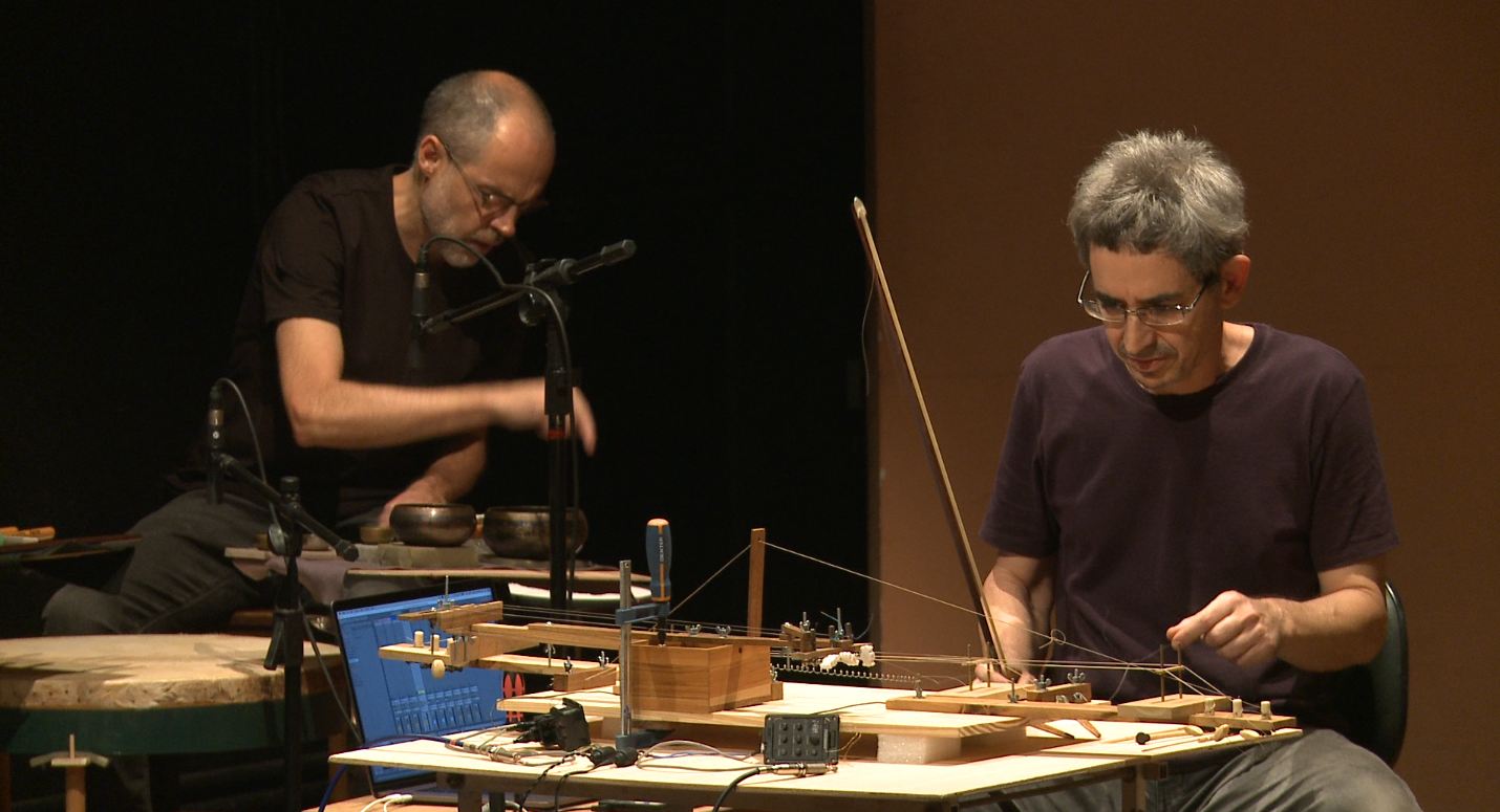No jardim do Museu, ficará a instalação sonora e musical “O telegrafista”, que trabalha com variações orquestrais e de timbre de 4 pulsos.