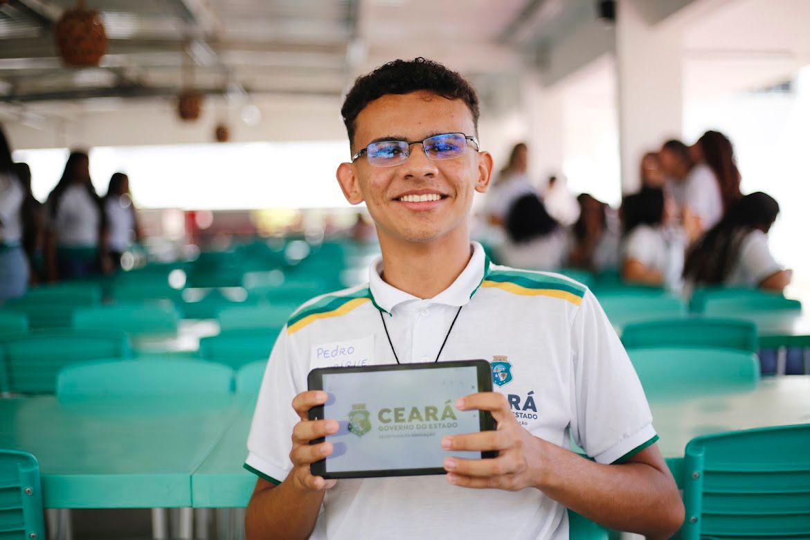 Cada aparelho vem acompanhado de um chip de internet, garantindo aos estudantes conectividade tanto na escola, quando necessário, quanto em casa. Pedro Henrique, estudante da 1ª série do Ensino Médio da Escola de Ensino Médio (EEM) Ana Facó, ressaltou a inclusão digital proporcionada pelo equipamento entregue pelo Governo do Ceará.