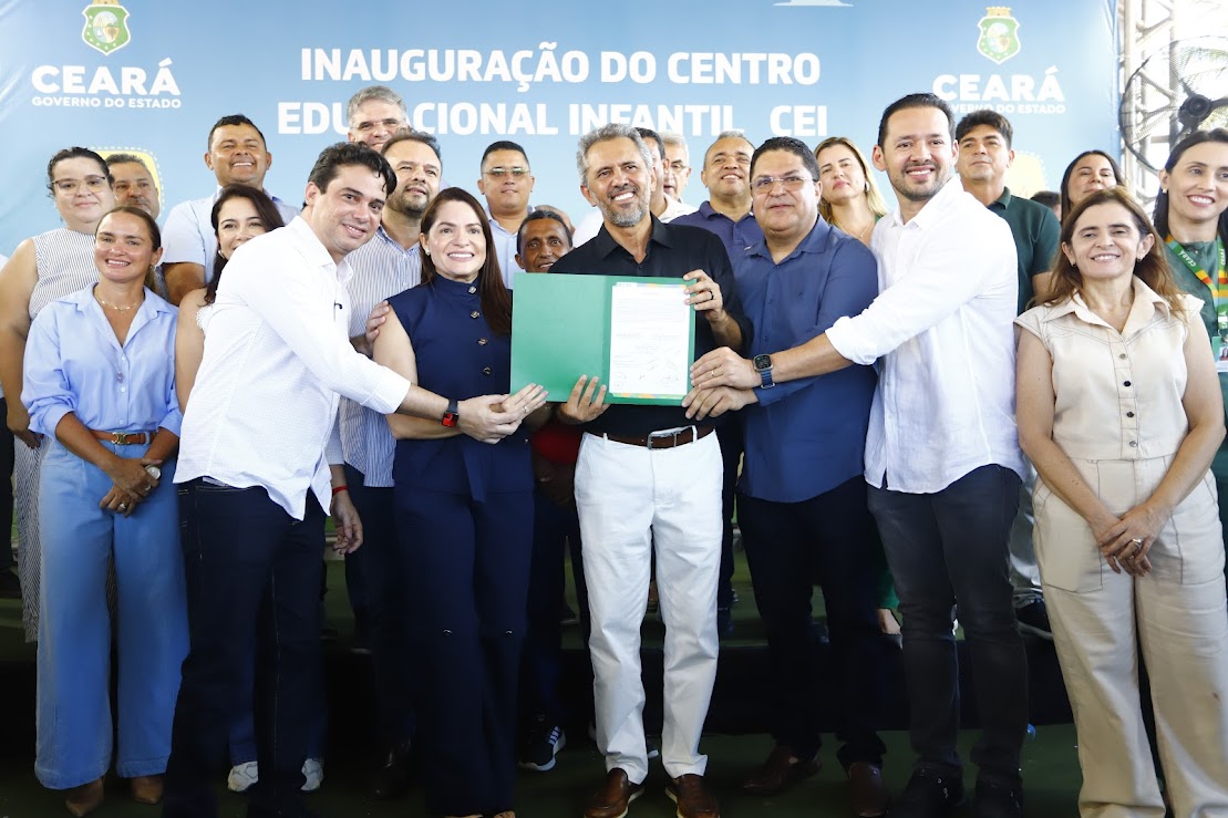 A população de Fortim pôde comemorar, nesta segunda-feira (8), a entrega de um Centro de Educação Infantil (CEI) para atender até 208 crianças. Durante o evento, comandado pelo governador Elmano de Freitas, também foi assinada ordem de serviço para a pavimentação asfáltica até a localidade de Coqueirinho. Ao todo, o investimento para as duas ações é de R$ 10,8 milhões.