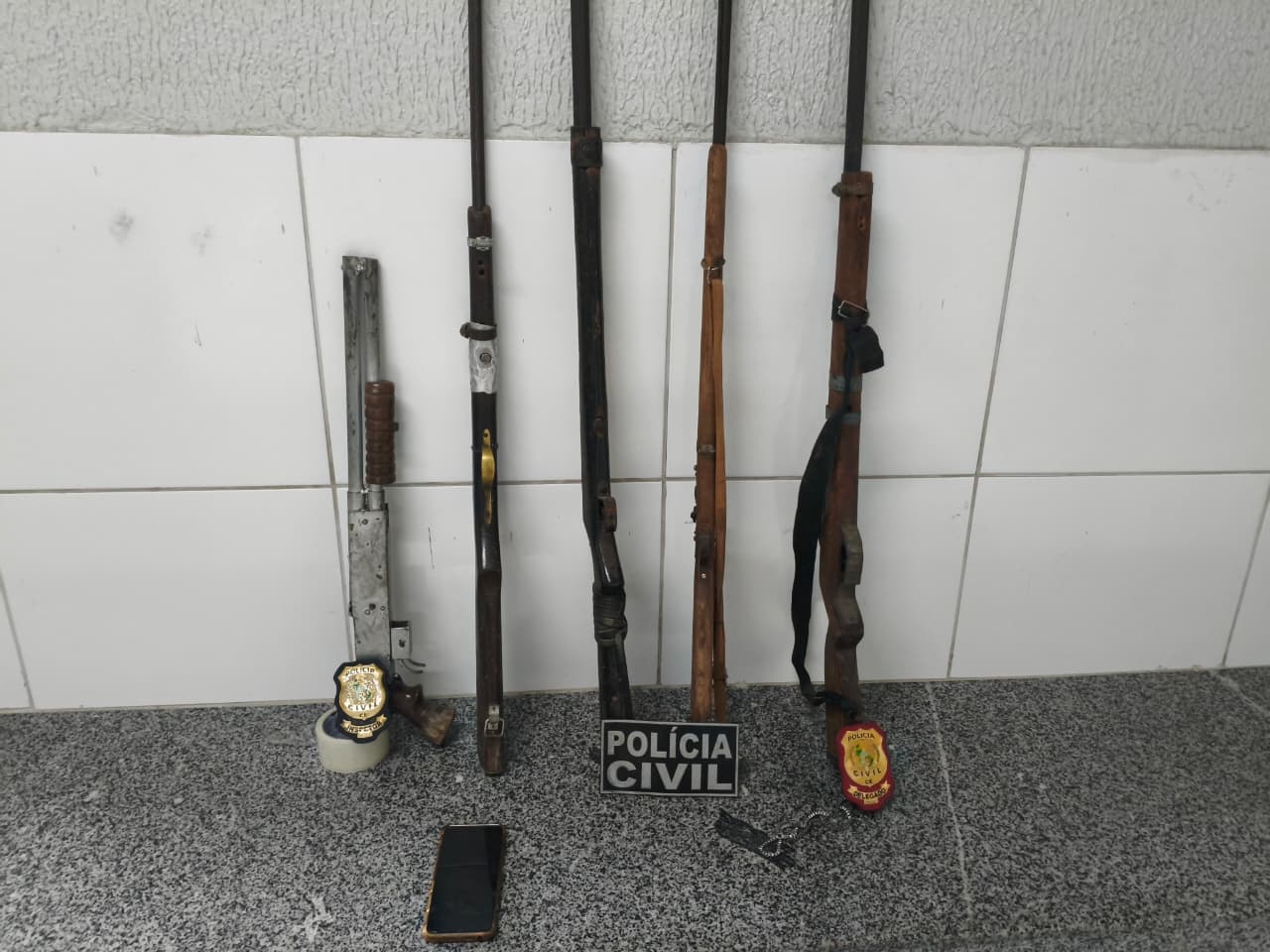Durante as ações na região, equipes da PCCE e da PMCE cumpriram mandados de busca e apreensão em um imóvel no município de Arneiroz (AIS 18). No local, foi apreendida uma espingarda calibre 12. Já na cidade de Parambu (AIS 22), foi cumprido outro mandado de busca e apreensão em uma residência, que resultou na apreensão de quatro espingardas calibre 12.