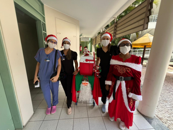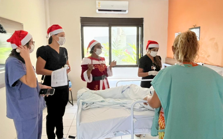 Grupo percorreu os quartos dos pacientes com alimentação especial para a data natalina