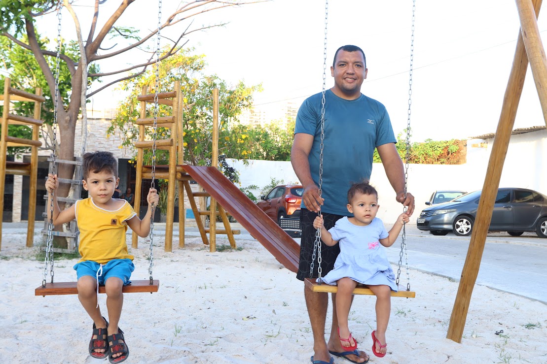 Da calçada de casa, a partir de agora, José Alberto vai poder acompanhar os dois filhos, Noemi e Calebe, brincando na Praça do Campim, no Jardim América. O espaço, que há mais de 60 anos aguardava uma revitalização, segundo Alberto, ganhou áreas de lazer, esporte e convivência. A ação faz parte do programa FORtaleCE, do Governo do Ceará, em parceria com a Prefeitura de Fortaleza.