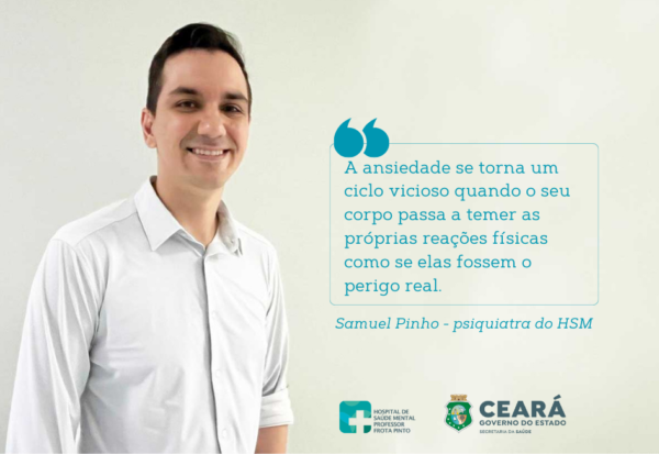 O psiquiatra do HSM, Samuel Pinho, explica que entre os principais sintomas físicos da ansiedade estão taquicardia, sensação de aperto no peito, falta de ar, sudorese excessiva, tremores, tensão muscular, dores de cabeça, tontura, náuseas e alterações gastrointestinais, como diarreia ou constipação. Também são frequentes o cansaço persistente, a dificuldade para relaxar e os distúrbios do sono, especialmente a insônia ou o sono não reparador.