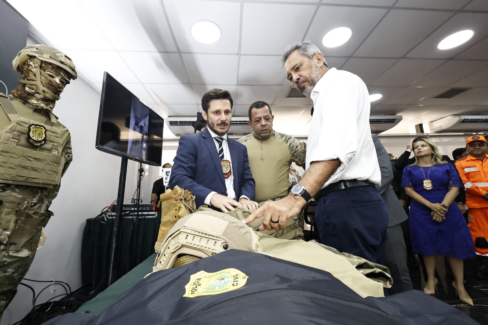 Para reforçar o trabalho na área da segurança pública, o Governo do Ceará entregou, nesta segunda-feira (12), mais de 7,3 mil equipamentos à Polícia Civil do Ceará (PCCE). A solenidade, realizada no Centro Integrado de Segurança Pública (Cisp), em Fortaleza, contou com a presença do governador Elmano de Freitas, acompanhado do delegado-geral da PCCE, Márcio Gutiérrez, além dos comandantes e dirigentes das forças de segurança do Estado.