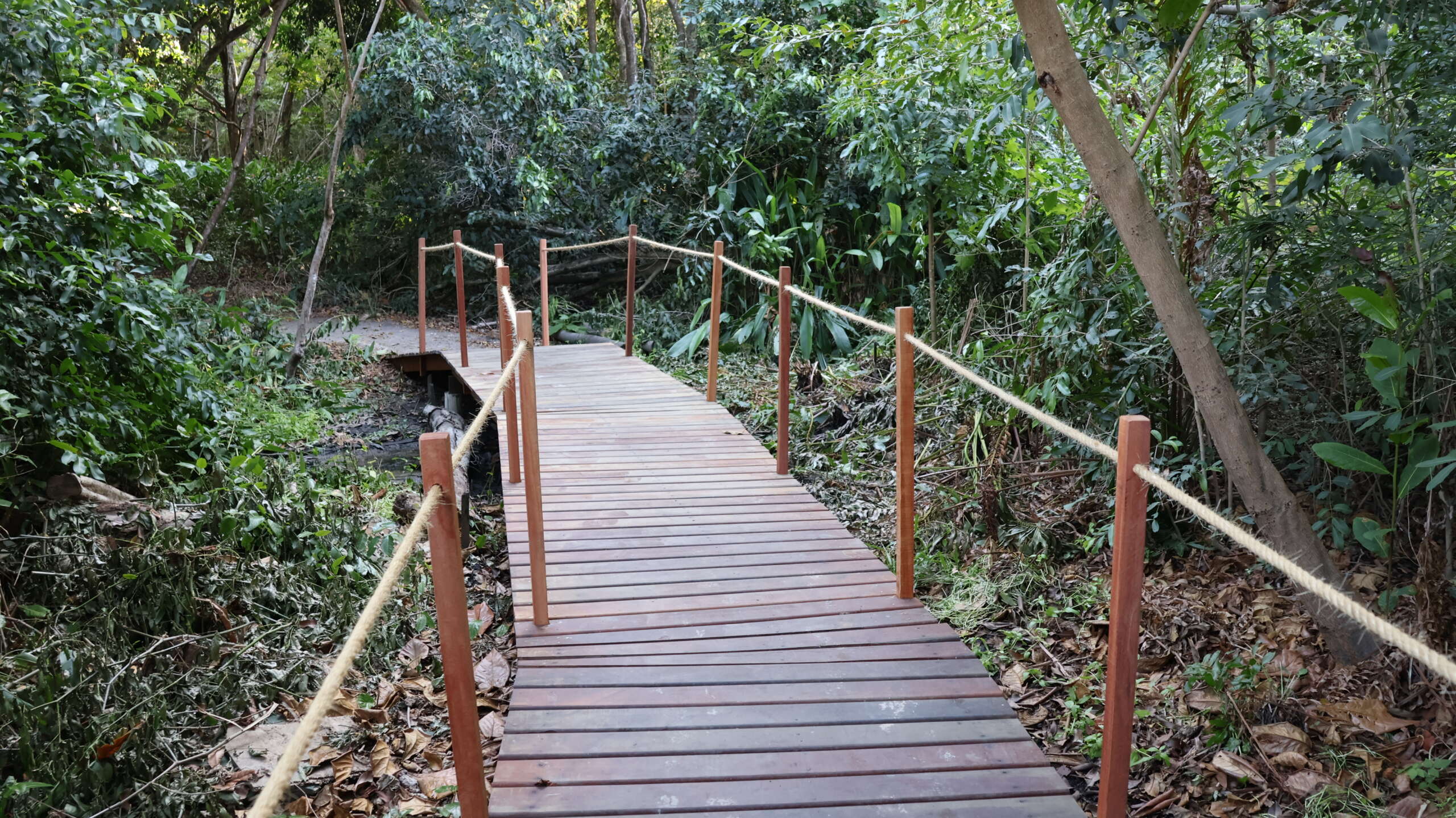 A ponte que interliga a trilha ecológica, com aproximadamente 2,5 quilômetros de extensão, foi reformada, oferecendo melhor estrutura aos visitantes que buscam a área para atividades como observação de aves e prática de exercícios físicos.