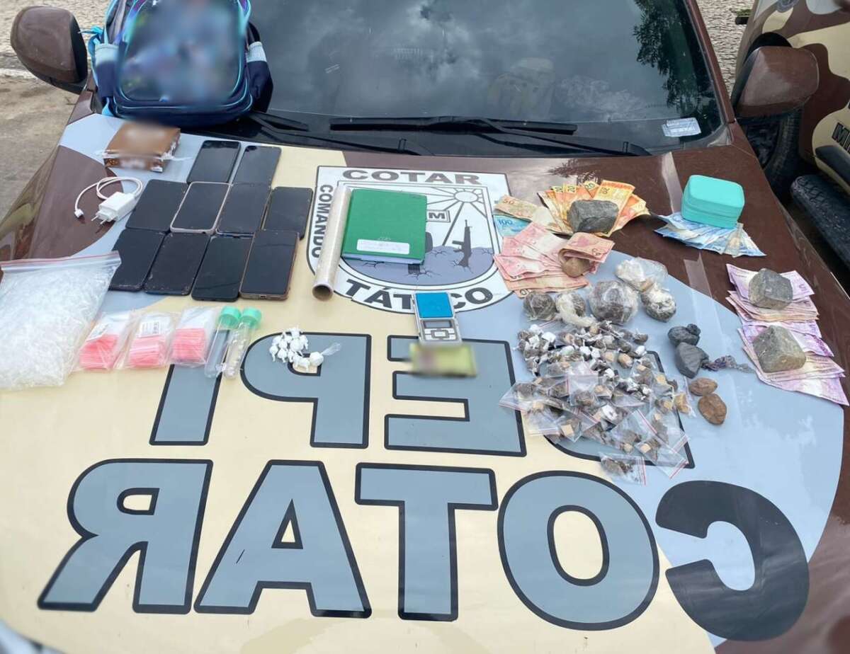 Ao todo, foram apreendidos 269 gramas de maconha, 65 gramas de cocaína e 32 gramas de crack, além de 10 aparelhos celulares, uma balança de precisão, material para embalagem de drogas e certa quantia de dinheiro em espécie.