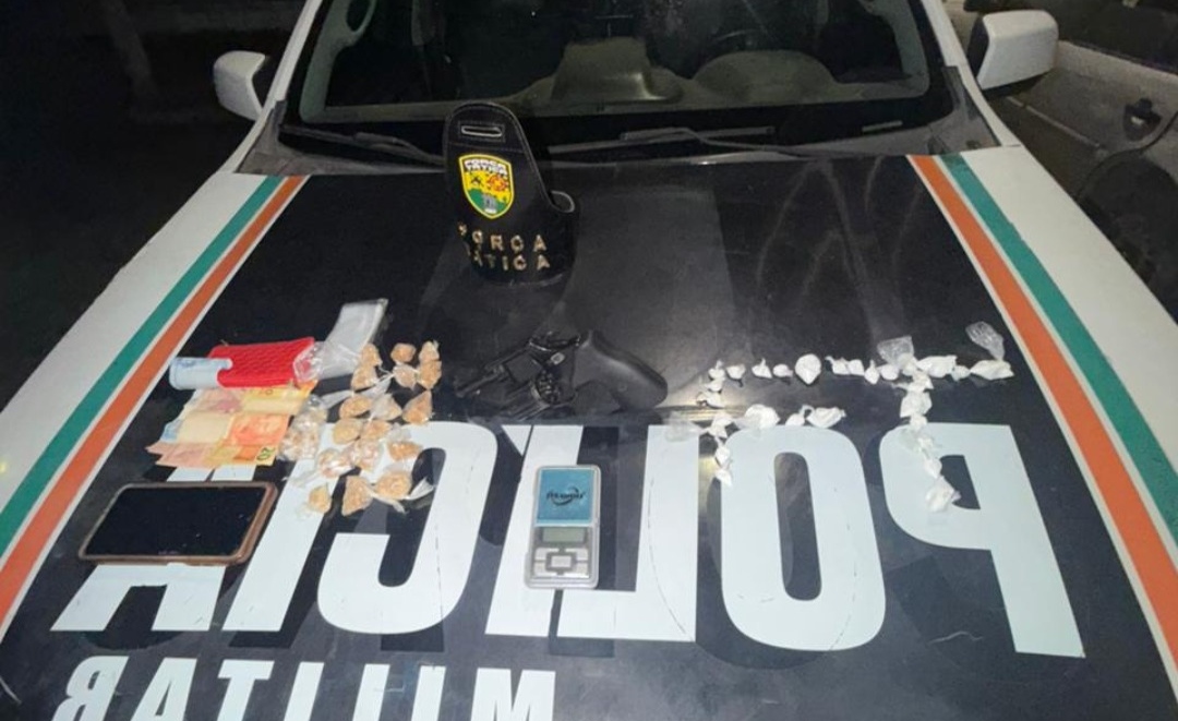 As diligências iniciaram logo depois que uma equipe da PMCE recebeu uma denúncia informando sobre a prática do tráfico de drogas em uma rua do bairro Prourb, em Morada Nova (AIS 20). Ao chegar ao local, os policiais militares localizaram um indivíduo, um homem de 25 anos. Com ele foram encontrados uma arma de fogo, 84,1 gramas de crack, 59,3 gramas de cocaína, uma quantia em dinheiro, um celular e outros.