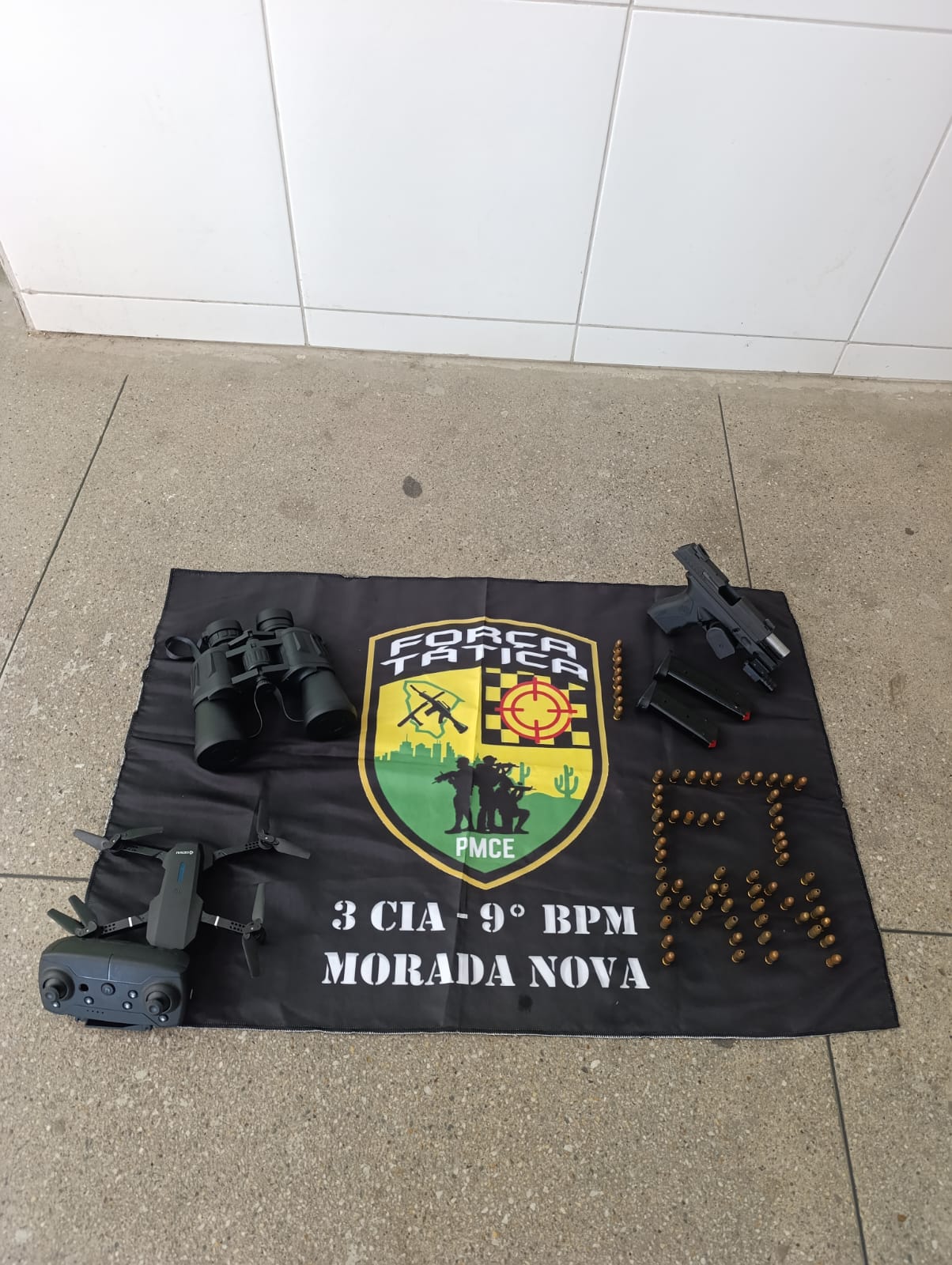 Polícia Militar cumpre mandado de prisão e apreende armas e drone em Morada Nova