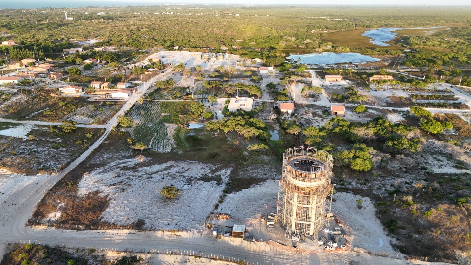 Executada pela Secretaria do Turismo do Ceará, a obra teve ordem de serviço assinada em 25 de outubro de 2024 e tem prazo de conclusão previsto para abril de 2027. O empreendimento inclui a construção de uma Estação de Tratamento de Água (ETA) e de uma Estação de Tratamento de Esgoto (ETE), cerca de 61,8 km de rede de distribuição de água, 58,8 km de rede coletora de esgoto, além de 3,4 km de linhas de recalque e cerca de 7 km de galerias de drenagem de águas pluviais, seguindo os parâmetros do Marco Legal do Saneamento. Ao final da obra, cerca de 20 mil pessoas serão beneficiadas com mais segurança hídrica e sanitária, com serviços adequados para atender residentes e o fluxo crescente de visitantes.