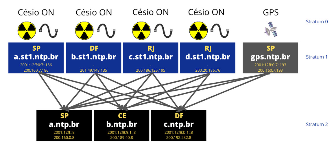 O relógio atômico de Césio 133 do Ceará, instalado em dezembro de 2025, no datacenter da Empresa de Tecnologia da Informação do Ceará (Etice), em Fortaleza, já figura no mapa do Observatório Nacional (ON) e do Núcleo de Informação e Coordenação do Ponto BR (NIC.br). O NIC.br é uma entidade civil, sem fins lucrativos, responsável por implementar as decisões e projetos do Comitê Gestor da Internet no Brasil (CGI.br). Ele gerencia o registro de domínios .br (Registro.br), coordena a infraestrutura de redes, promove segurança e produz estudos sobre o uso da internet no país.