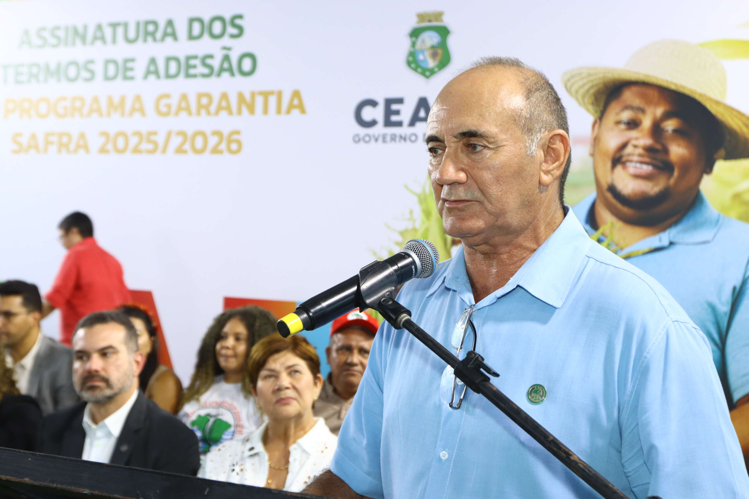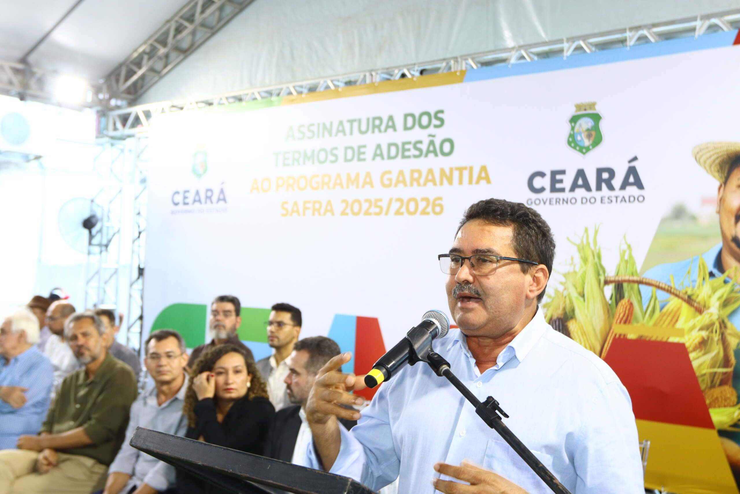Beneficiando mais de 195 mil agricultores familiares, o Governo do Ceará e os municípios cearenses assinaram, nesta terça-feira (3), a adesão ao Garantia Safra 2025/2026. O evento aconteceu na Secretaria de Desenvolvimento Agrário (SDA) e contou com a presença do governador Elmano de Freitas, de prefeitos e de outras autoridades.