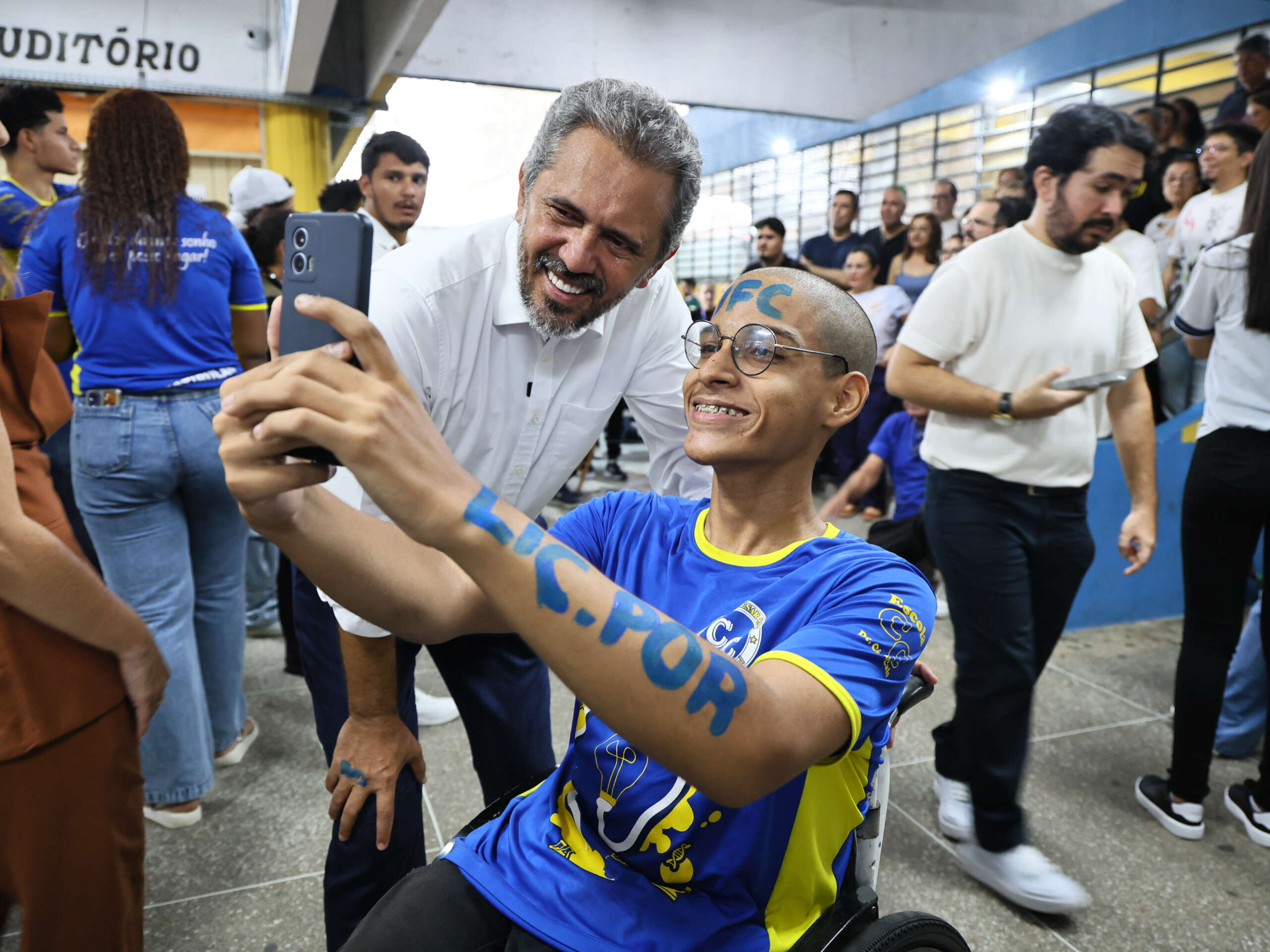 Emocionado, o governador Elmano de Freitas falou sobre a alegria de testemunhar os sonhos da juventude da escola pública sendo realizados. “A César Cals é referência e exemplo para nossa sociedade, demonstrando na prática a escola de excelência que estamos construindo”, disse.