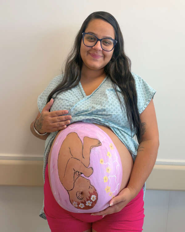 Mães tiveram suas barrigas pintadas com a representação de seus bebês