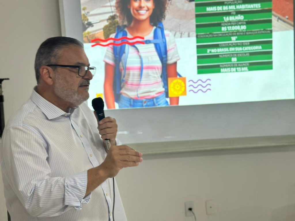Durante o encontro, foi realizada apresentação sobre o orçamento da Cogerh, conduzida pelo gerente de Planejamento e Orçamento, Denilson Fidelis.
