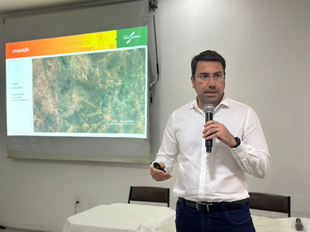 Também foi apresentado o contexto do projeto da Mina de Itataia, localizada no município de Santa Quitéria. A explanação foi conduzida por Christiano Brandão, gerente corporativo de Licenciamento Ambiental, Gestão Fundiária e Direitos Minerários da Galvani, empresa responsável pelo empreendimento.