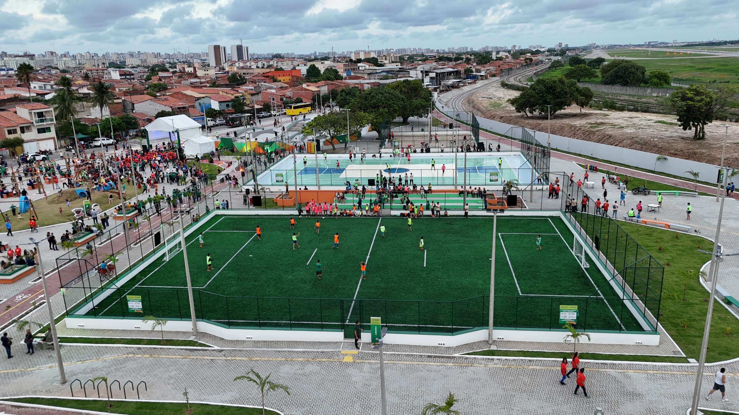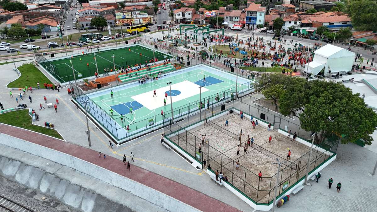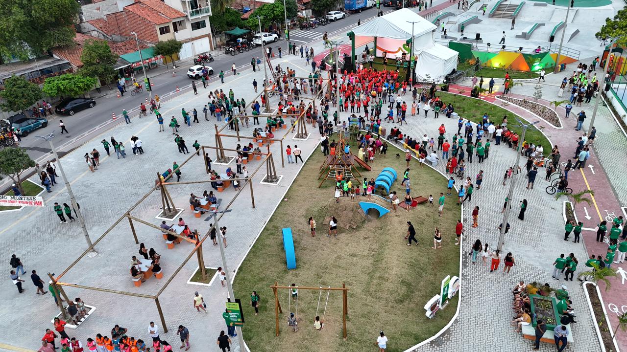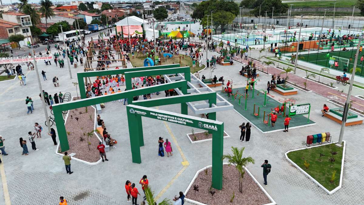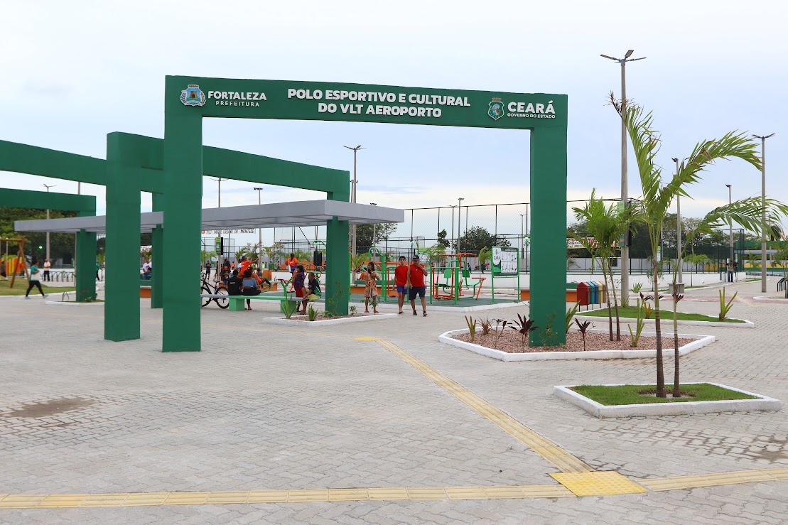 Onde antes havia um terreno baldio tomado pelo lixo, agora funciona a segunda maior praça de Fortaleza. O FORtaleCe, parceria entre o Governo do Ceará e a Prefeitura de Fortaleza, inaugurou, nesta quinta-feira (12), o Polo Esportivo e Cultural do VLT Aeroporto. Participaram da inauguração o governador Elmano de Freitas, o prefeito de Fortaleza, Evandro Leitão, o secretário-chefe da Casa Civil, Chagas Vieira, e outras autoridades.