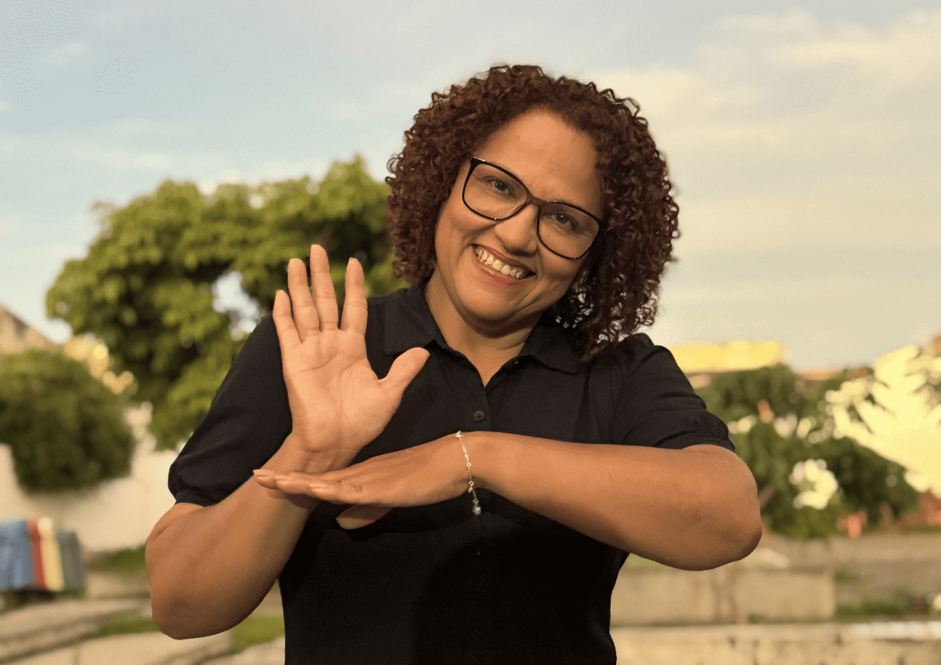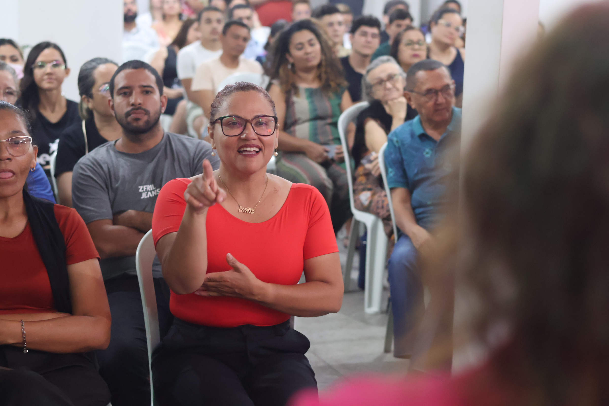 A facilitadora Aldenisa Peixoto é professora e intérprete de Libras na Unicatólica de Quixadá, tutora da disciplina de Libras (EaD) na Universidade Federal do Ceará (UFC) e técnica no Centro Formai. Graduada em Letras Libras pela Universidade Federal de Santa Catarina (UFSC), polo IFCE, é especialista em Libras e Educação Inclusiva (UNICID) e em Educação Global e Cidadania. Atua nas áreas de acessibilidade, educação inclusiva, cultura e direitos da pessoa com deficiência, integrando o GERPLATS e o Comitê de Ética em Pesquisa da Unicatólica.
